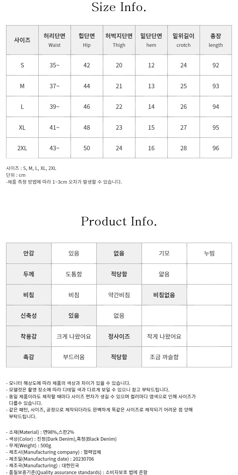진청, 흑청 / S 사이즈 착용했습니다^^