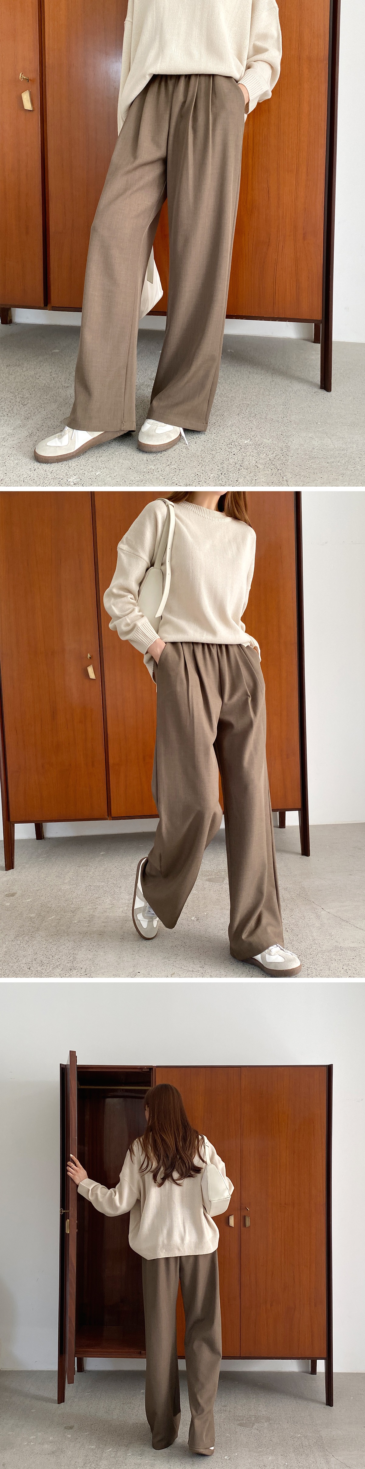 와이드슬랙스 밴딩슬랙스 투 핀턱 가을 여성 면 바지