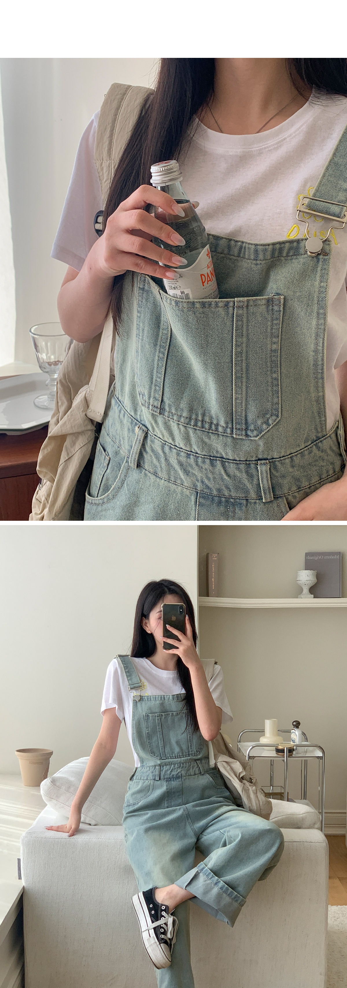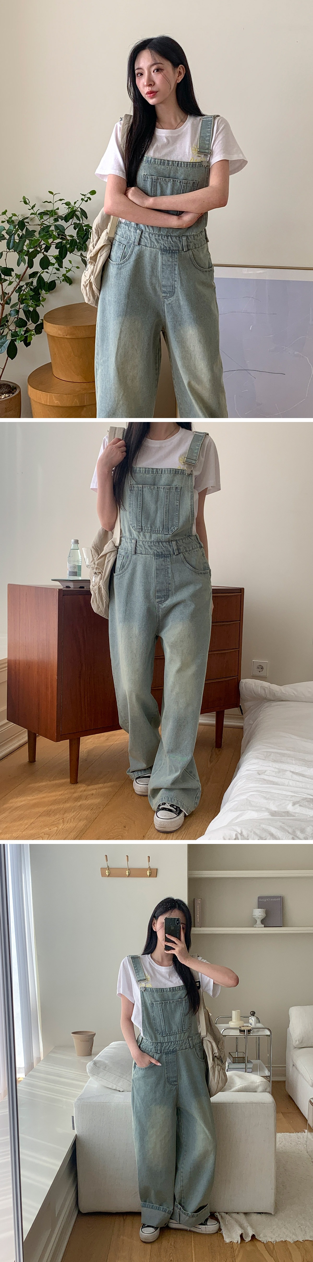 점프수트 빈티지 워싱 데님 멜빵바지 포켓 팬츠