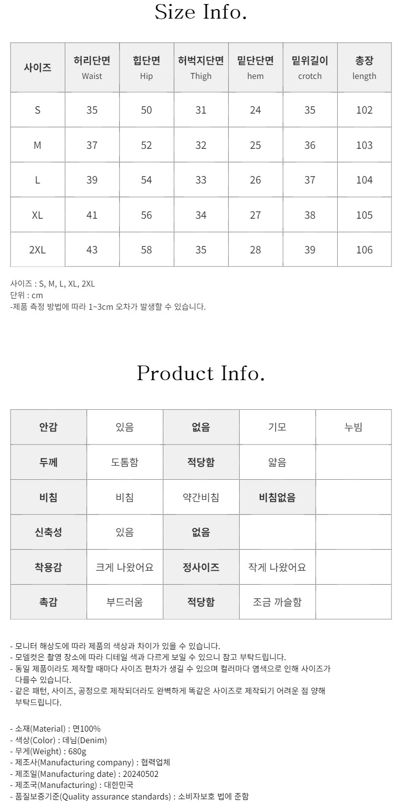일자청바지 빈티지 워싱 데님청바지 팬츠 S-2XL