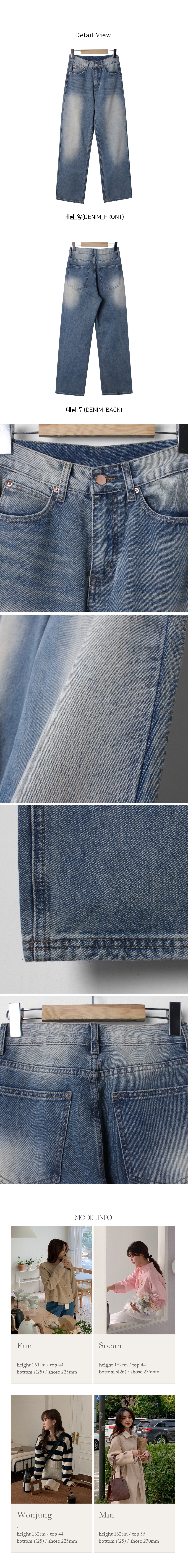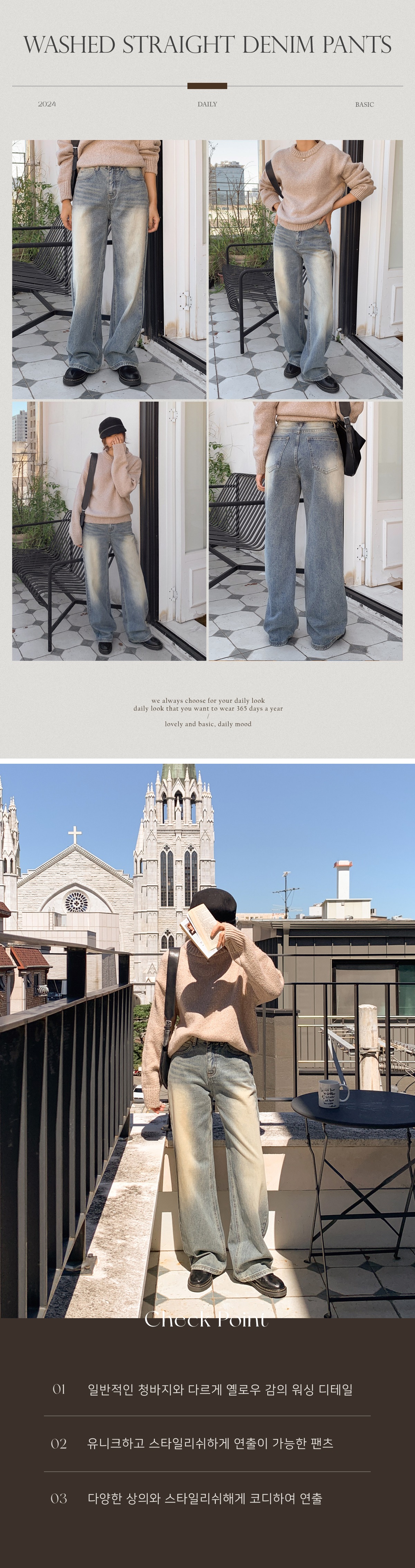 옐로우 워싱 스트레이트 여자 일자핏 데님 청바지