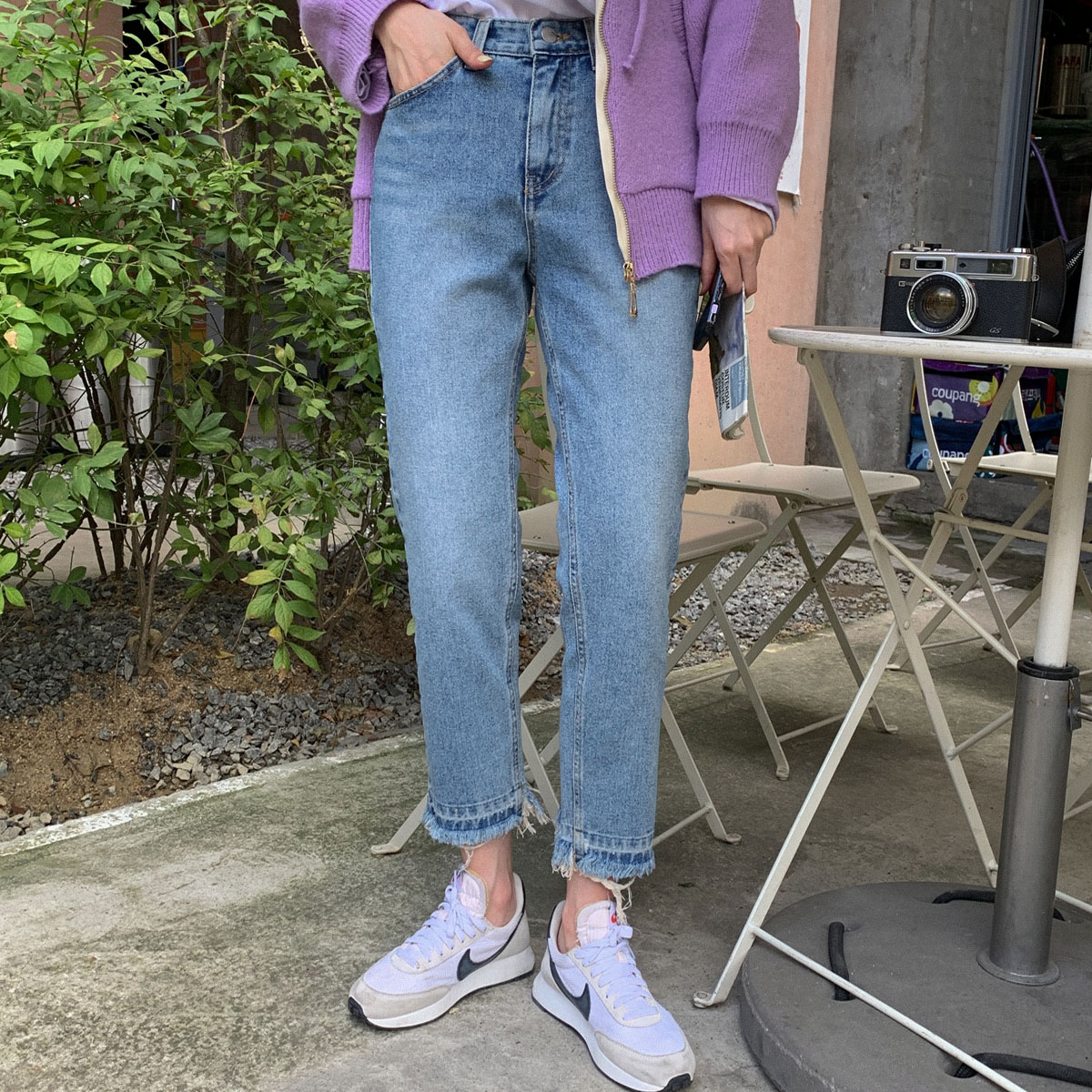 컷팅 워싱 일자 데님 팬츠 청바지 슬림 보이 핏 스판 여자 바지
