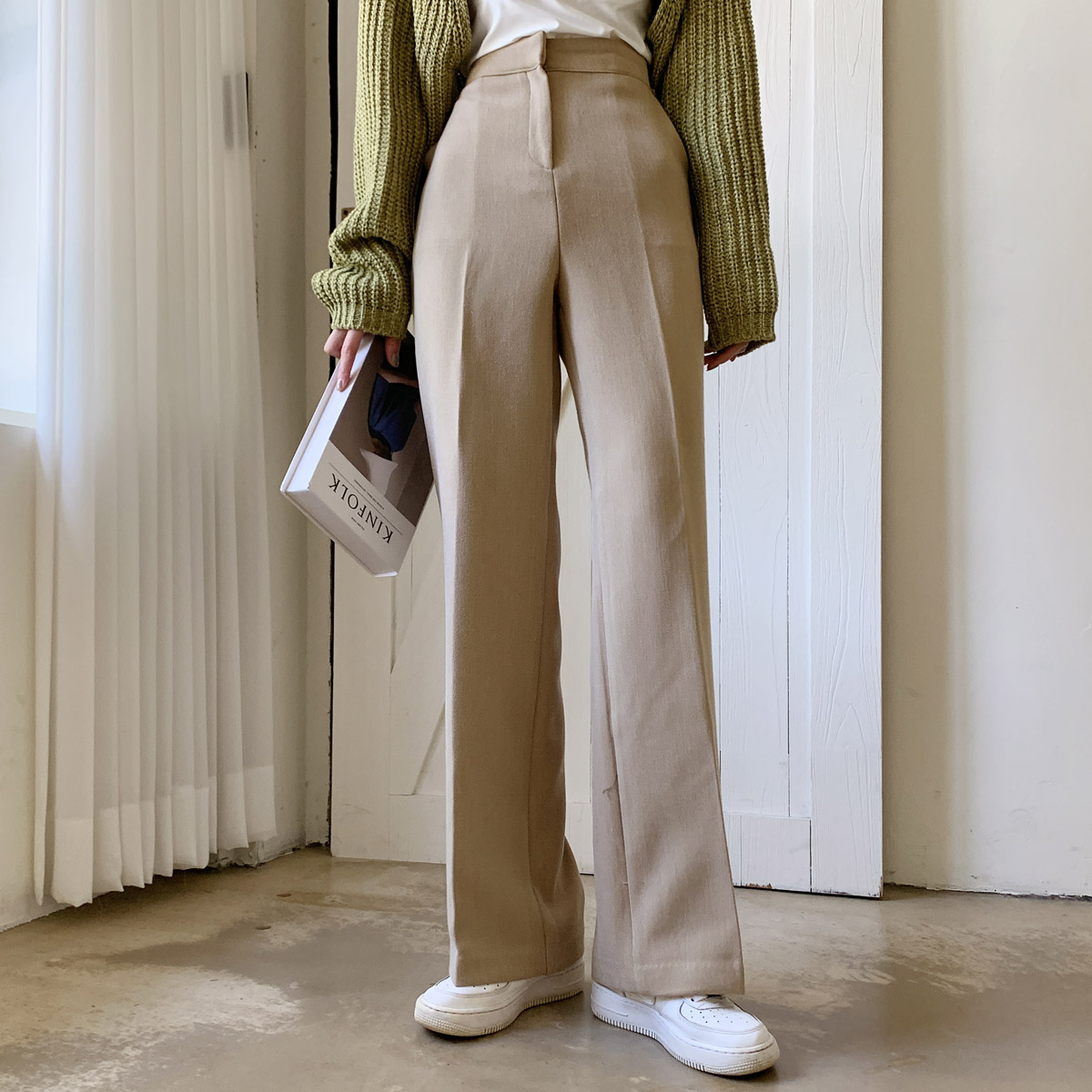 깔끔한 일자 심플 슬랙스 데일리 핀턱 여자 와이드 코디 모던 시크 베이직