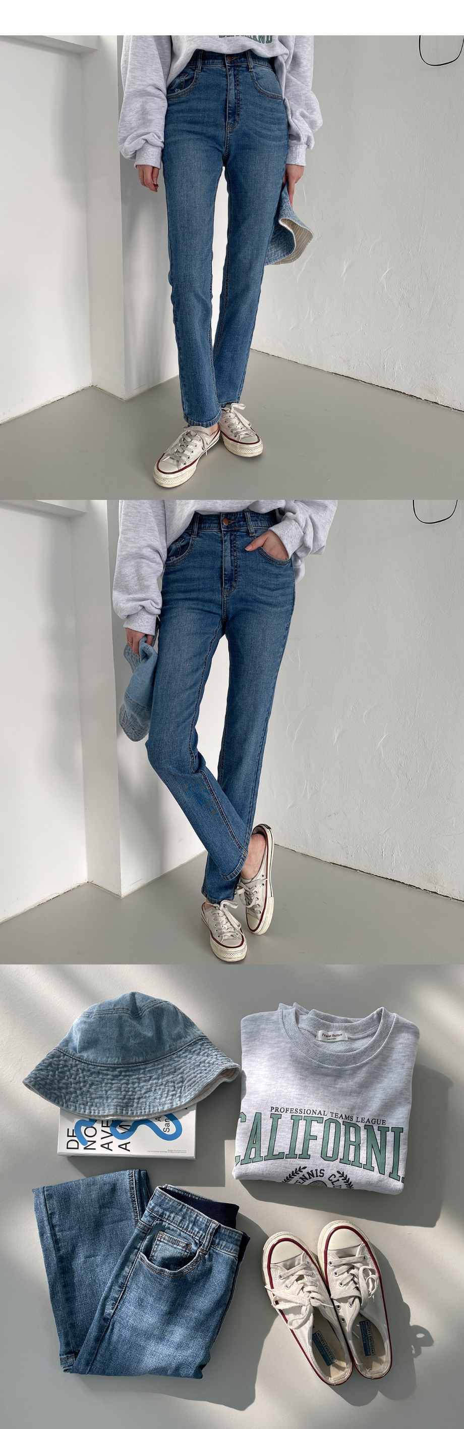 일자청바지 여성 진청 바지 데님 팬츠 밴딩 청바지