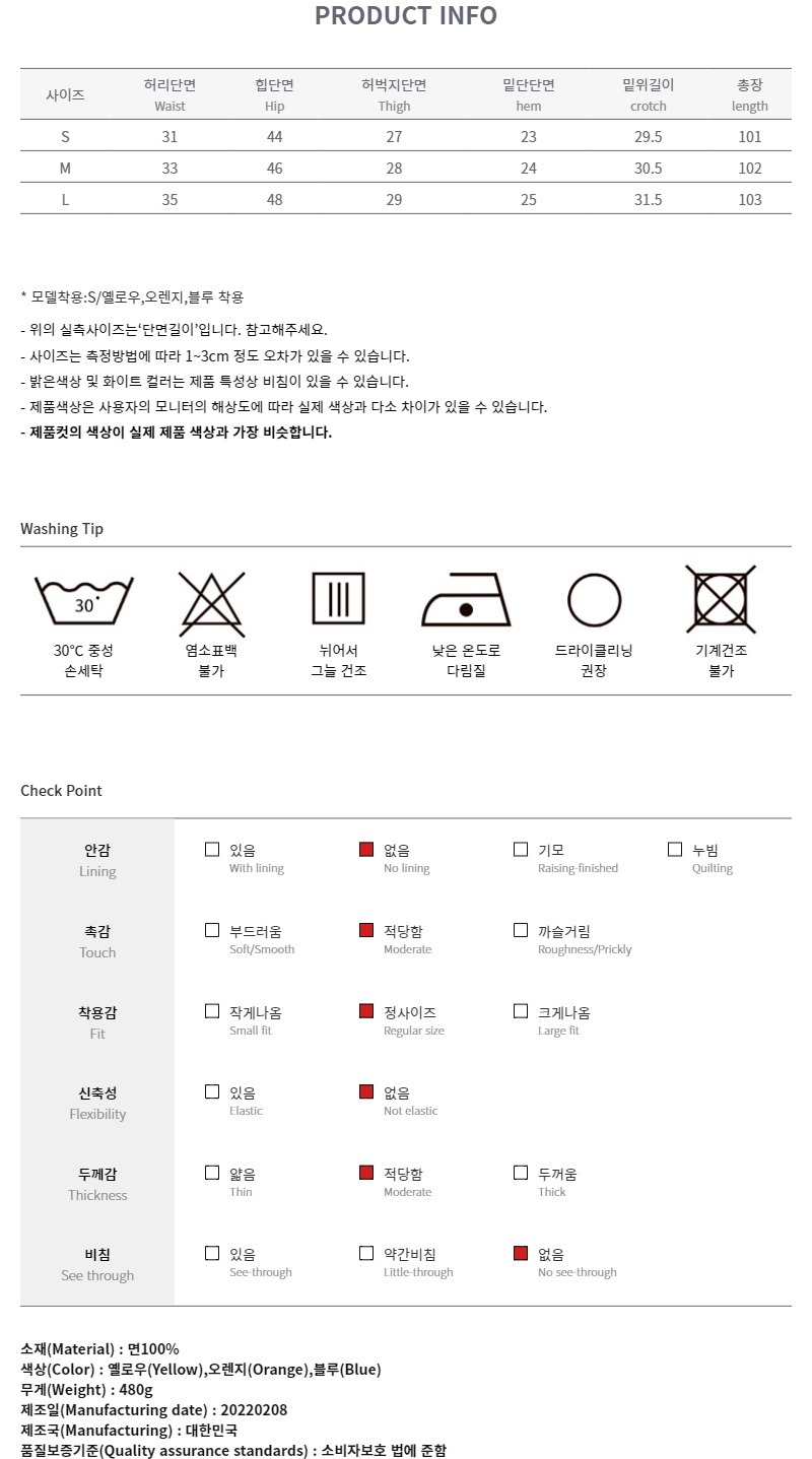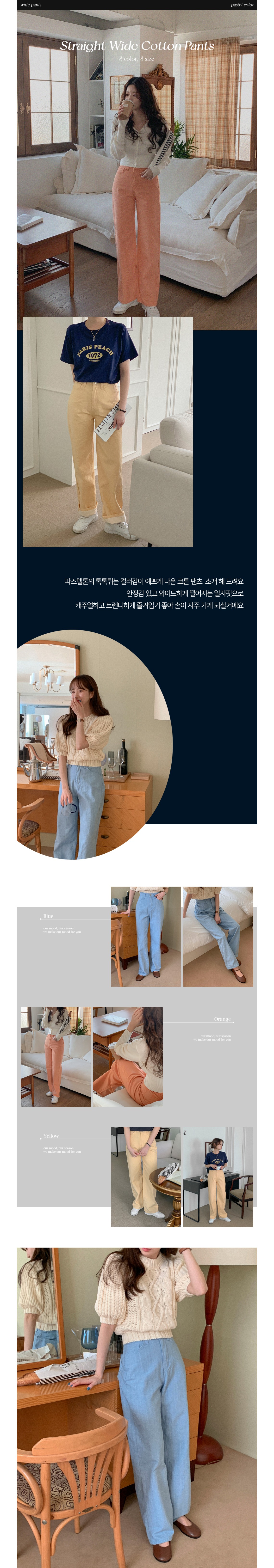 와이드팬츠 여성 일자 봄 여름 코튼 옐로우 오렌지 블루 바지 팬츠