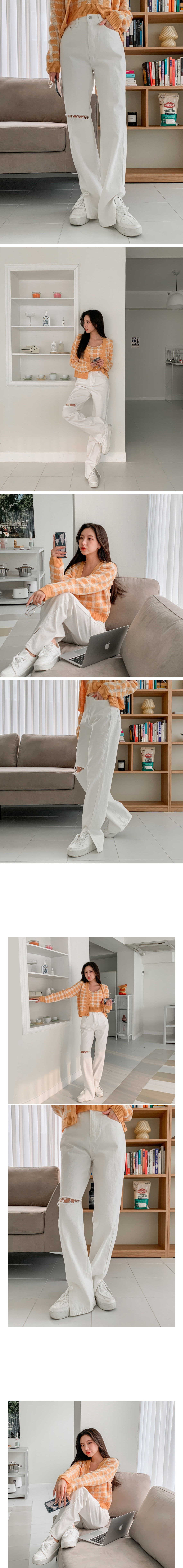 데미지 일자 팬츠 바지 컷팅 밑단 트임 여성 데님