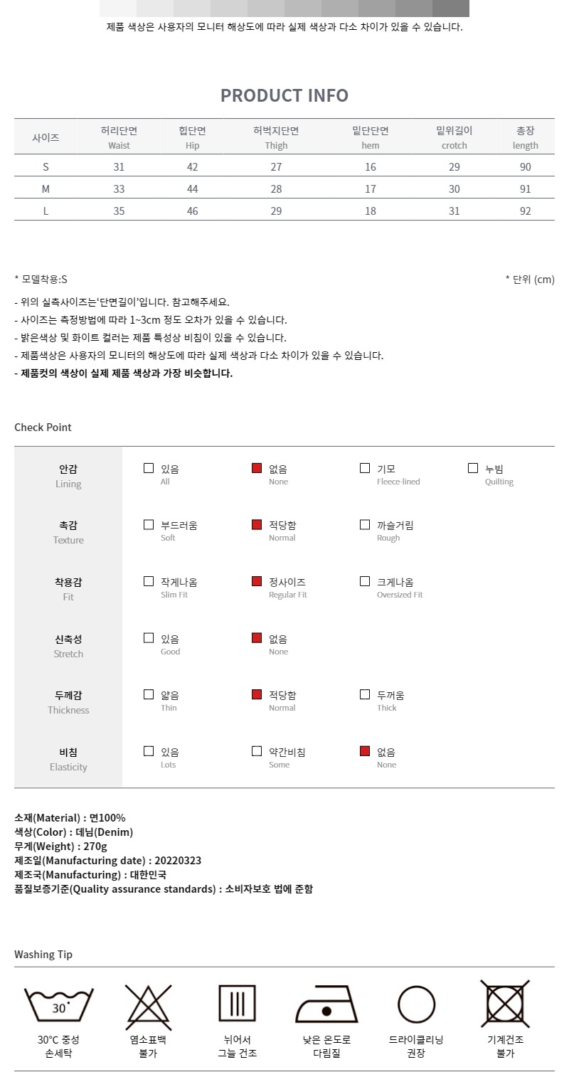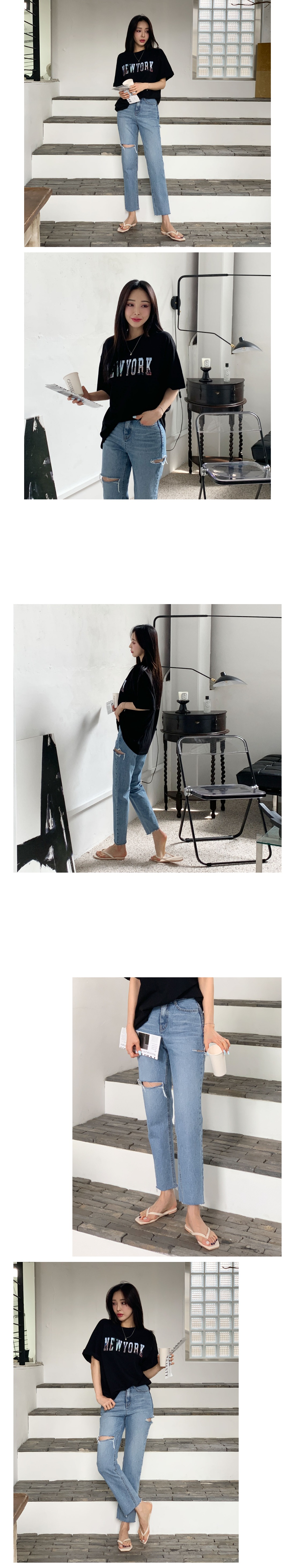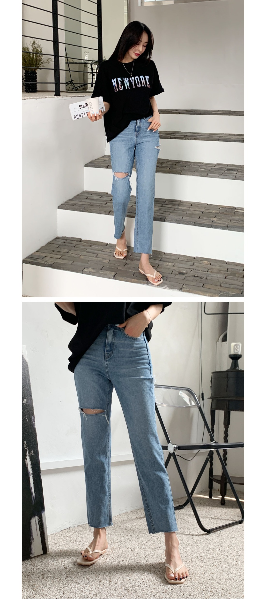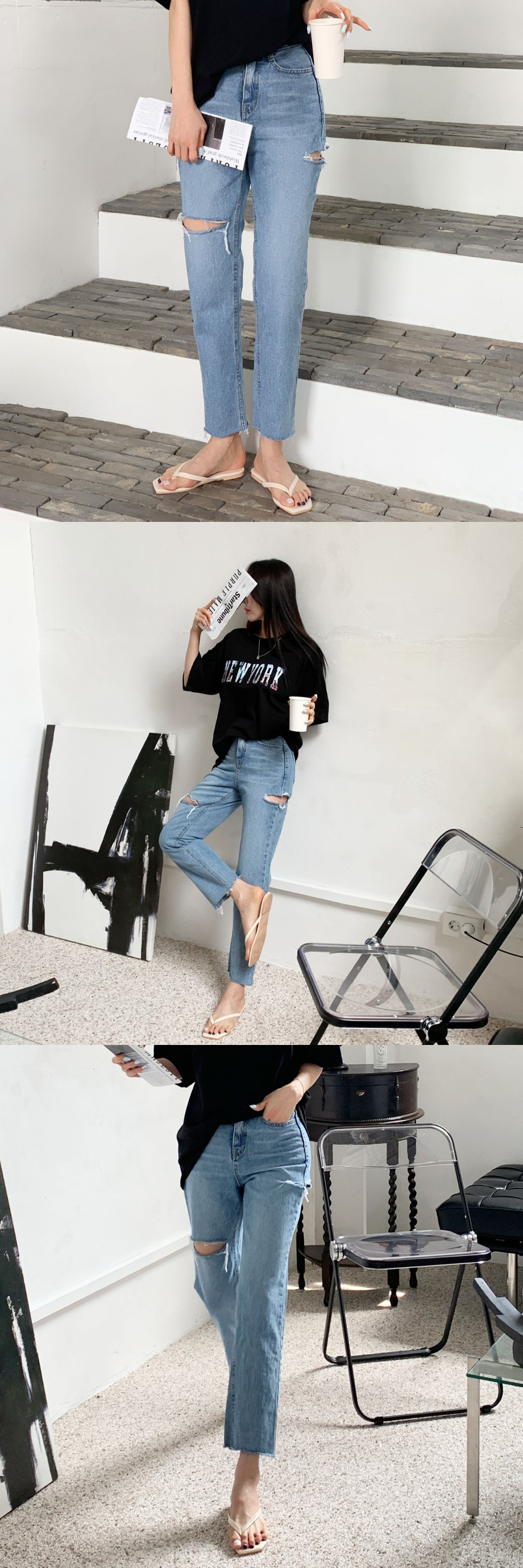 찢청 워싱 데님 일자 봄 여름 팬츠 청바지