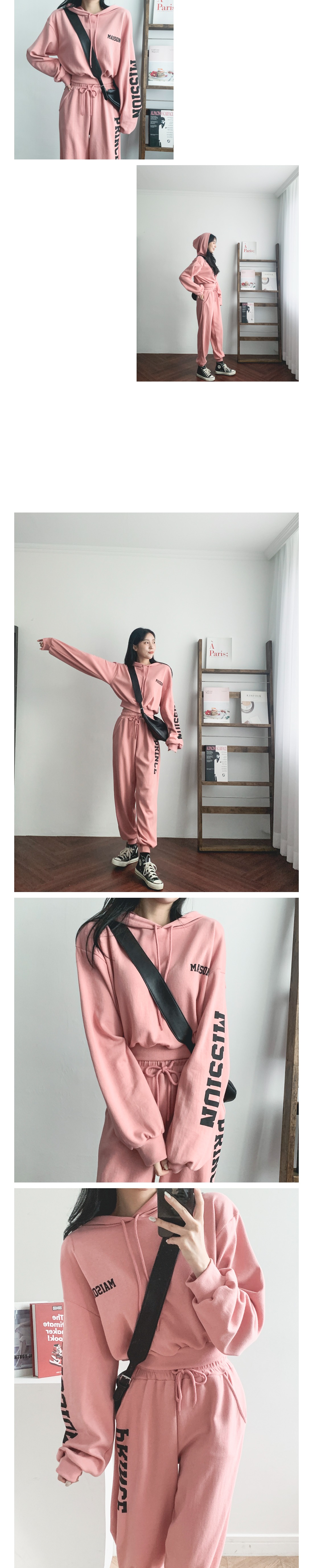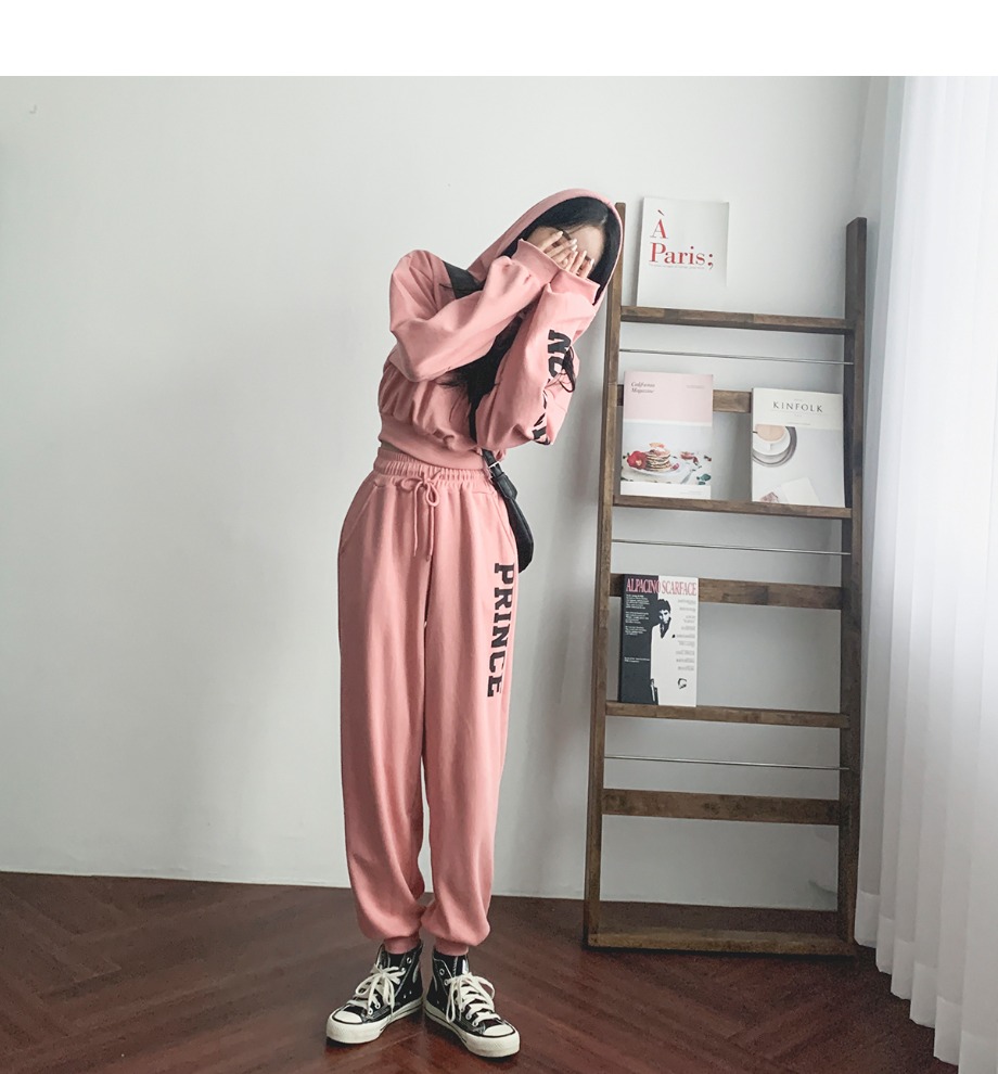 여성 레터링 크롭 후드 조거 팬츠 세트 핑크 그레이 블랙 여자 오버핏 홈웨어