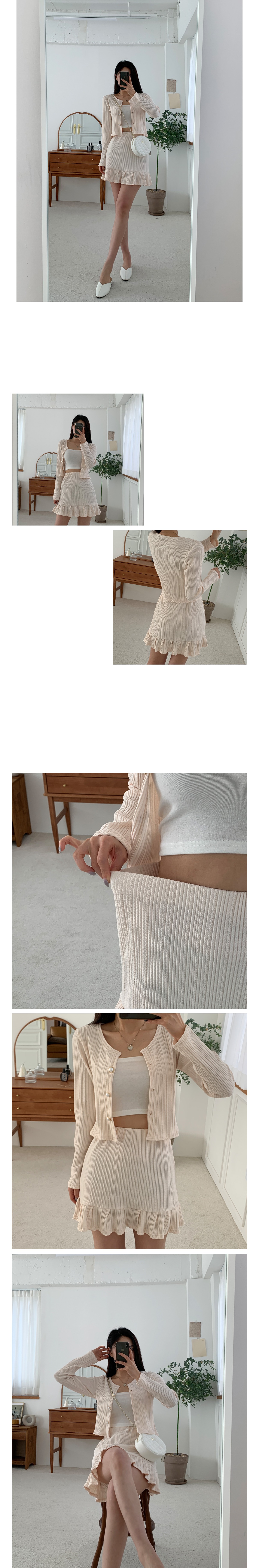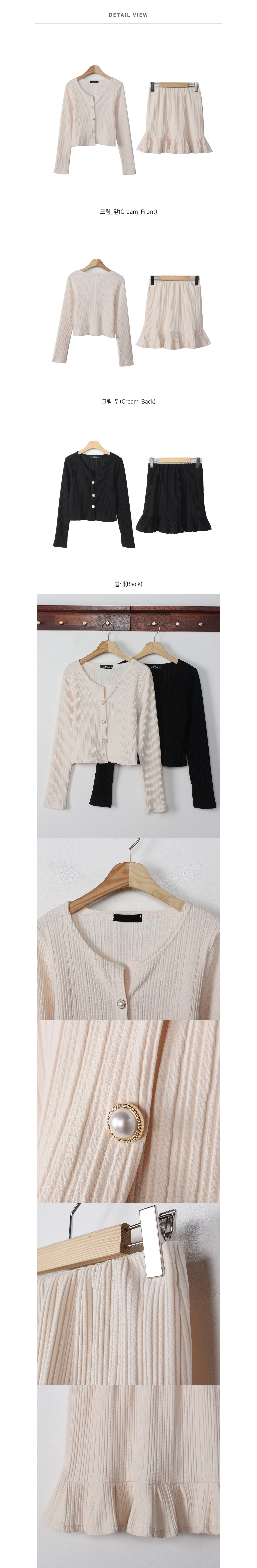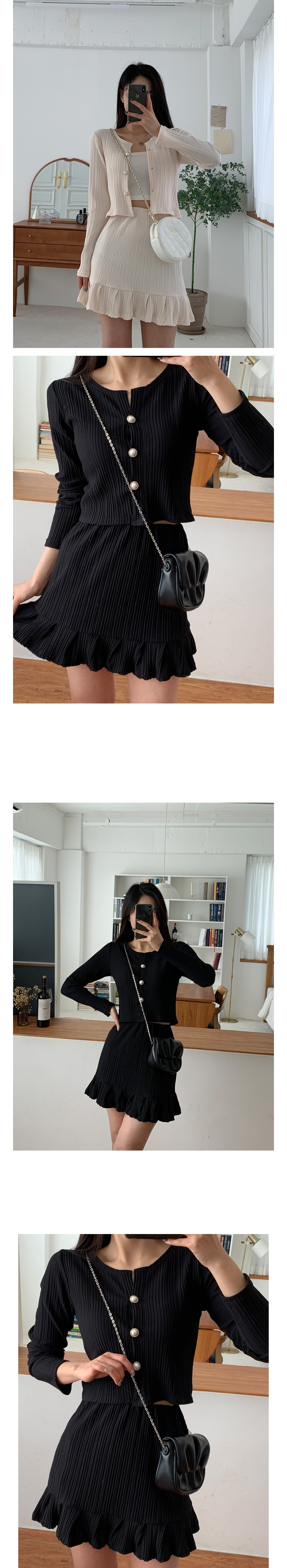 플리츠 가디건 미니 스커트 세트 크림 블랙 봄 투피스