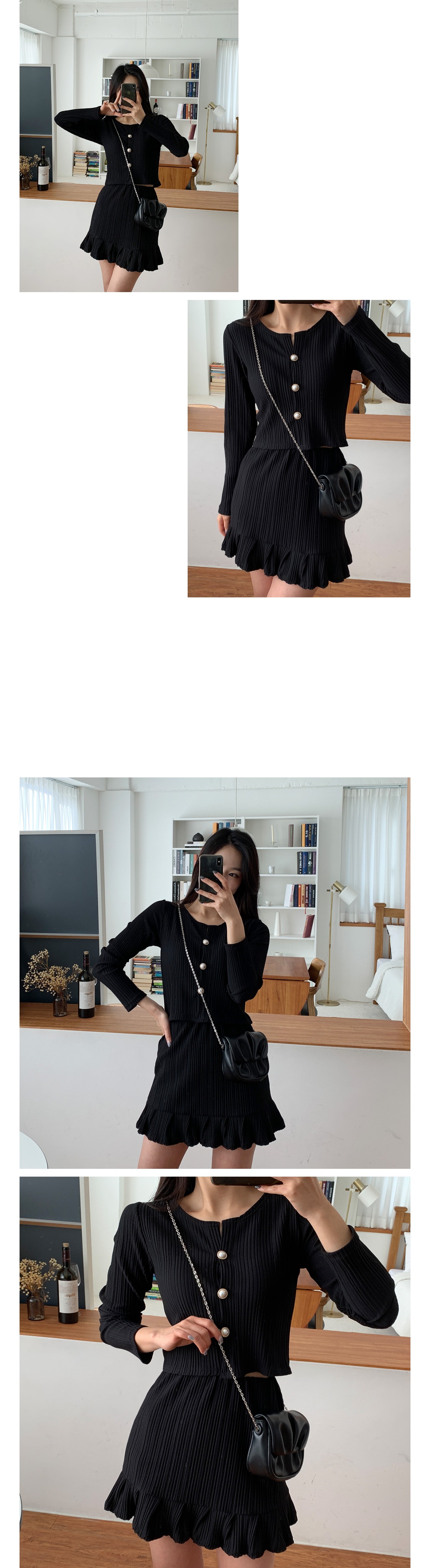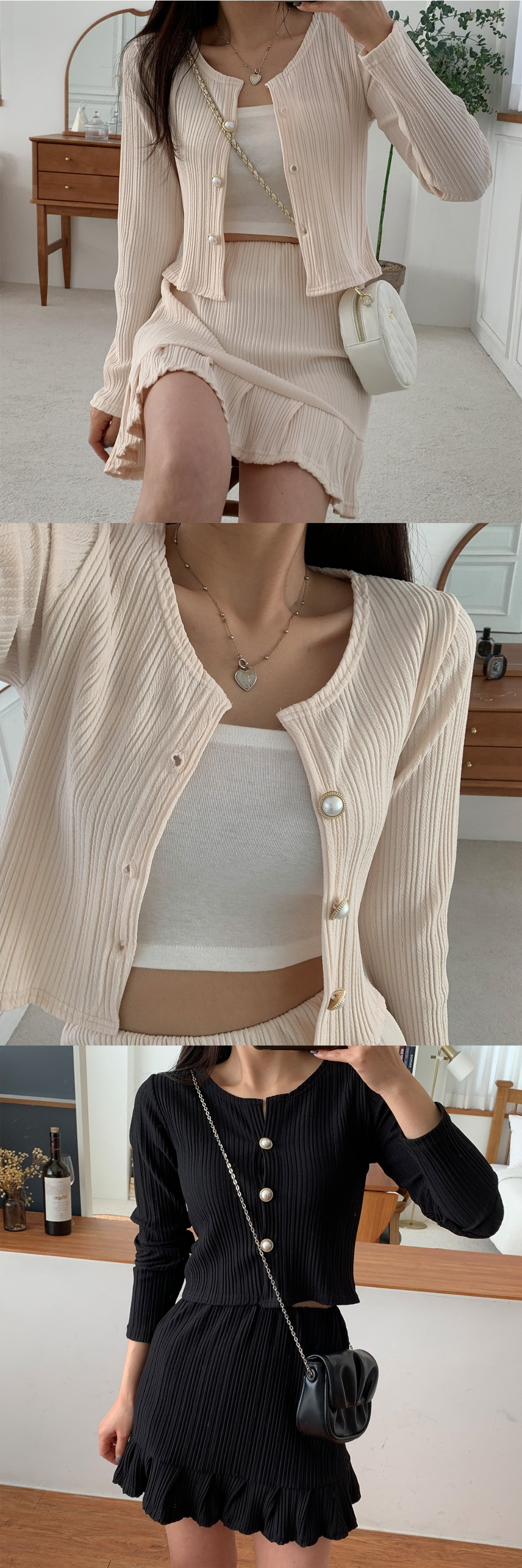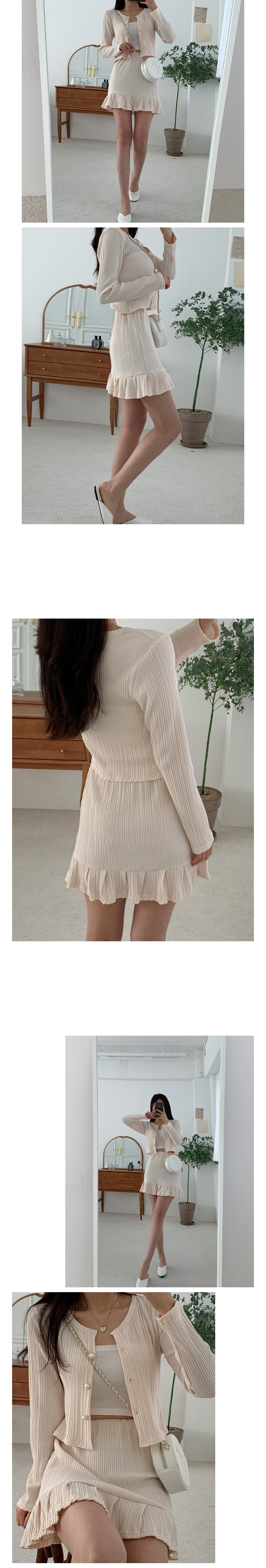 플리츠 가디건 미니 스커트 세트 크림 블랙 봄 투피스