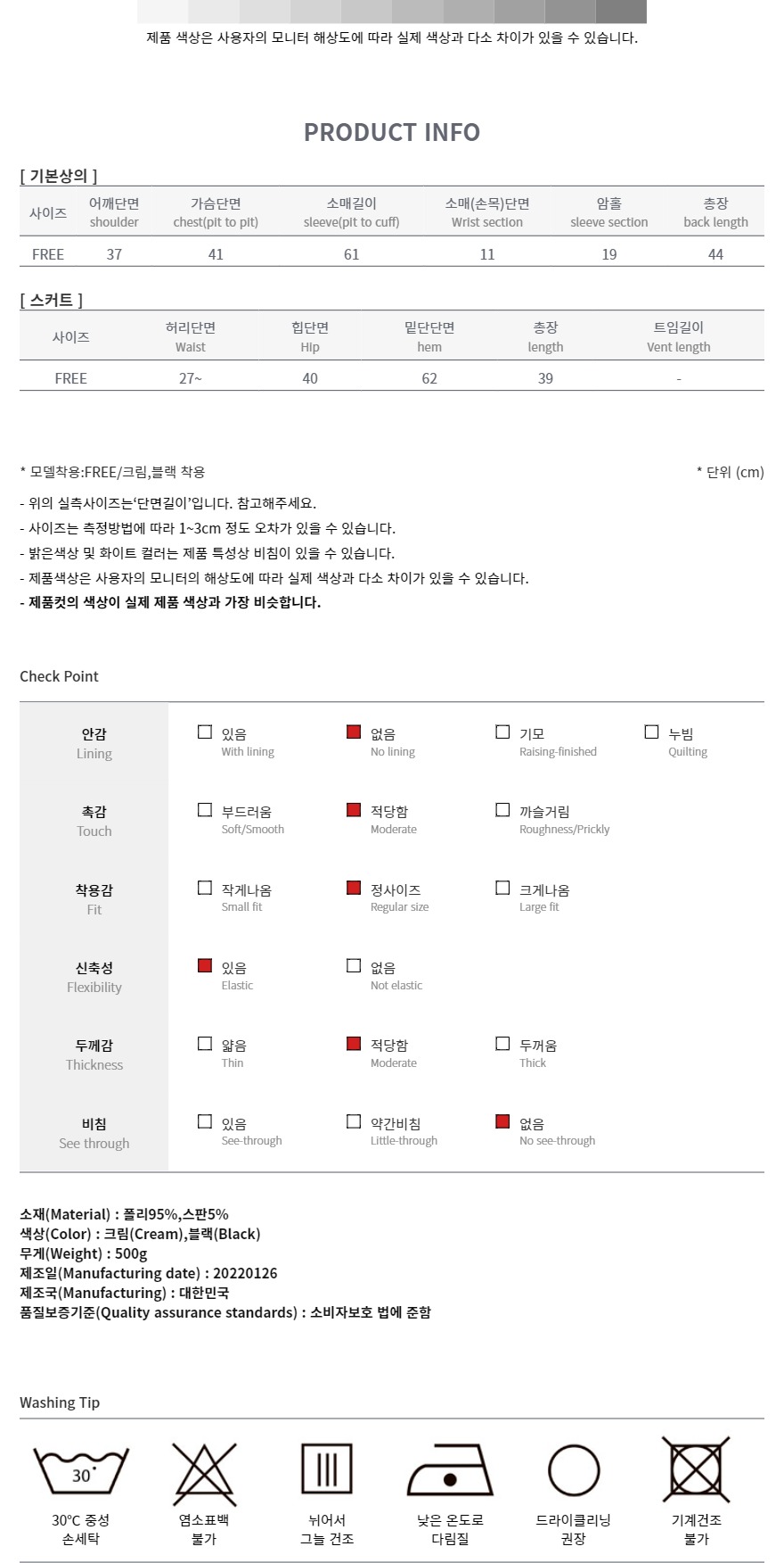 크림, 블랙 / FREE 사이즈 착용했습니다^^