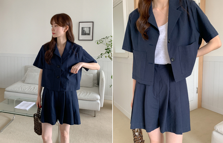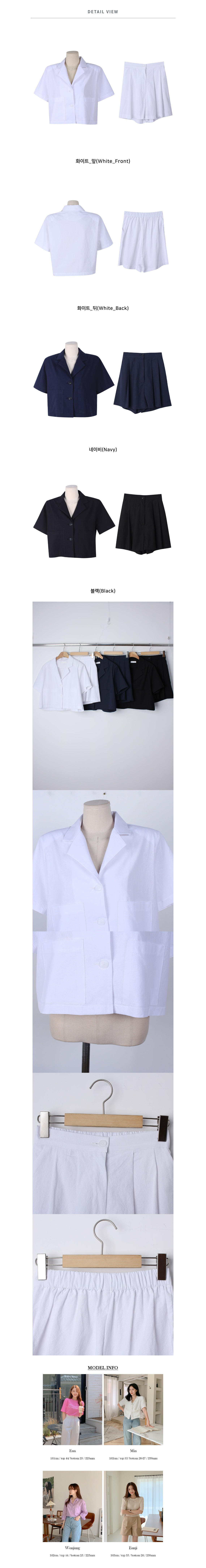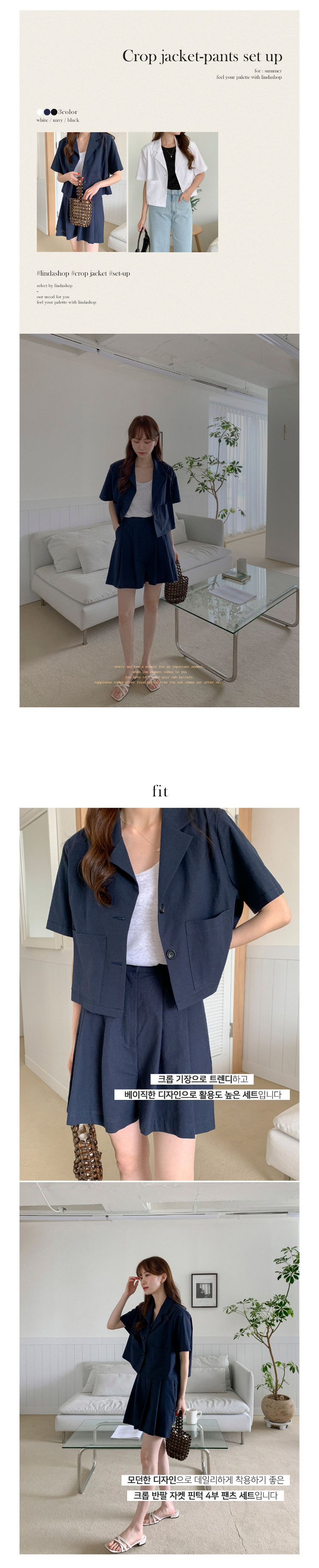 여름 크롭 자켓 아우터 핀턱 4부 팬츠 세트