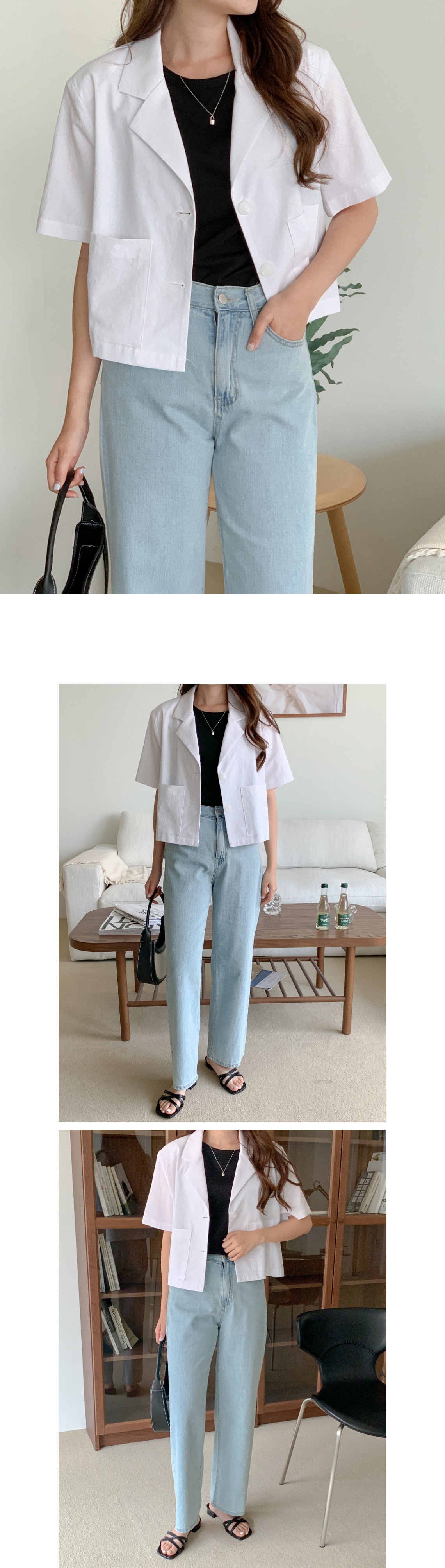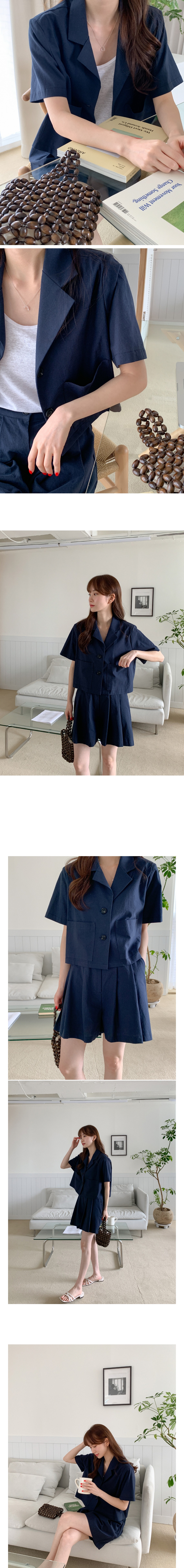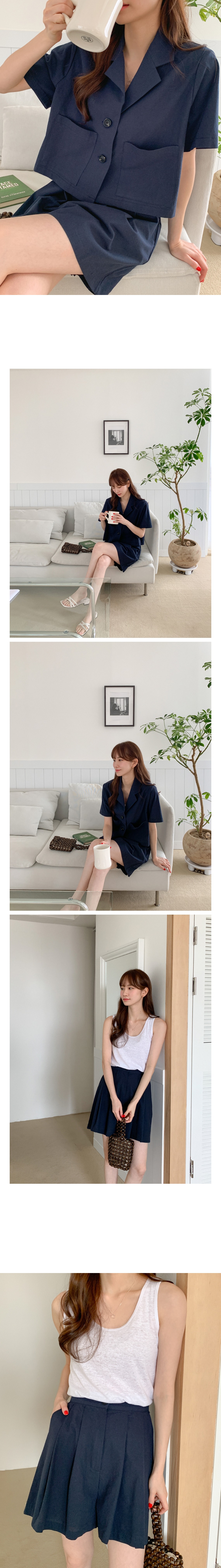 여름 크롭 자켓 아우터 핀턱 4부 팬츠 세트