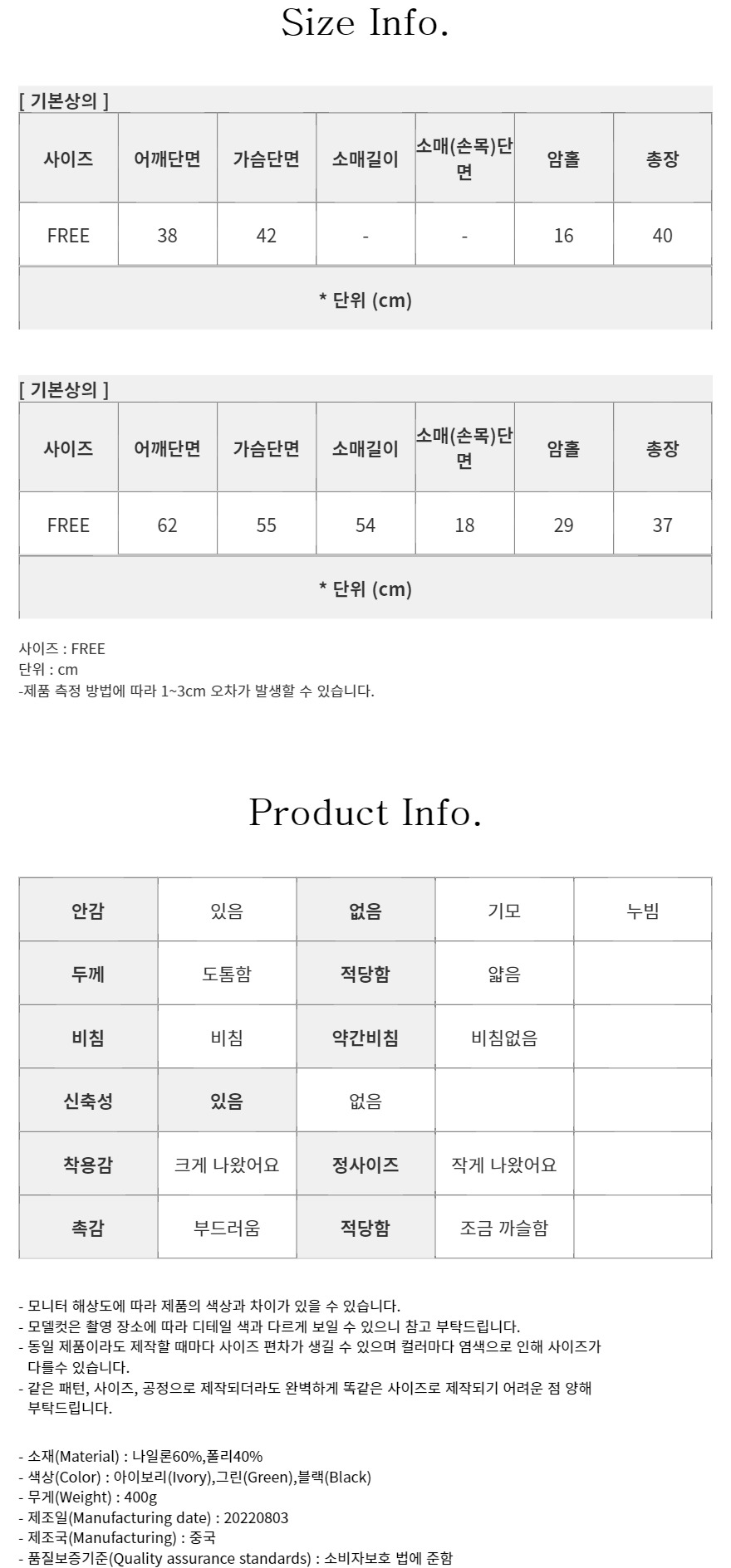 - 상품 하자, 오배송의 경우 수령일로부터 7일 이내 고객센터 접수 후 교환∙반품이 가능합니다. (교환/반품비 무료)