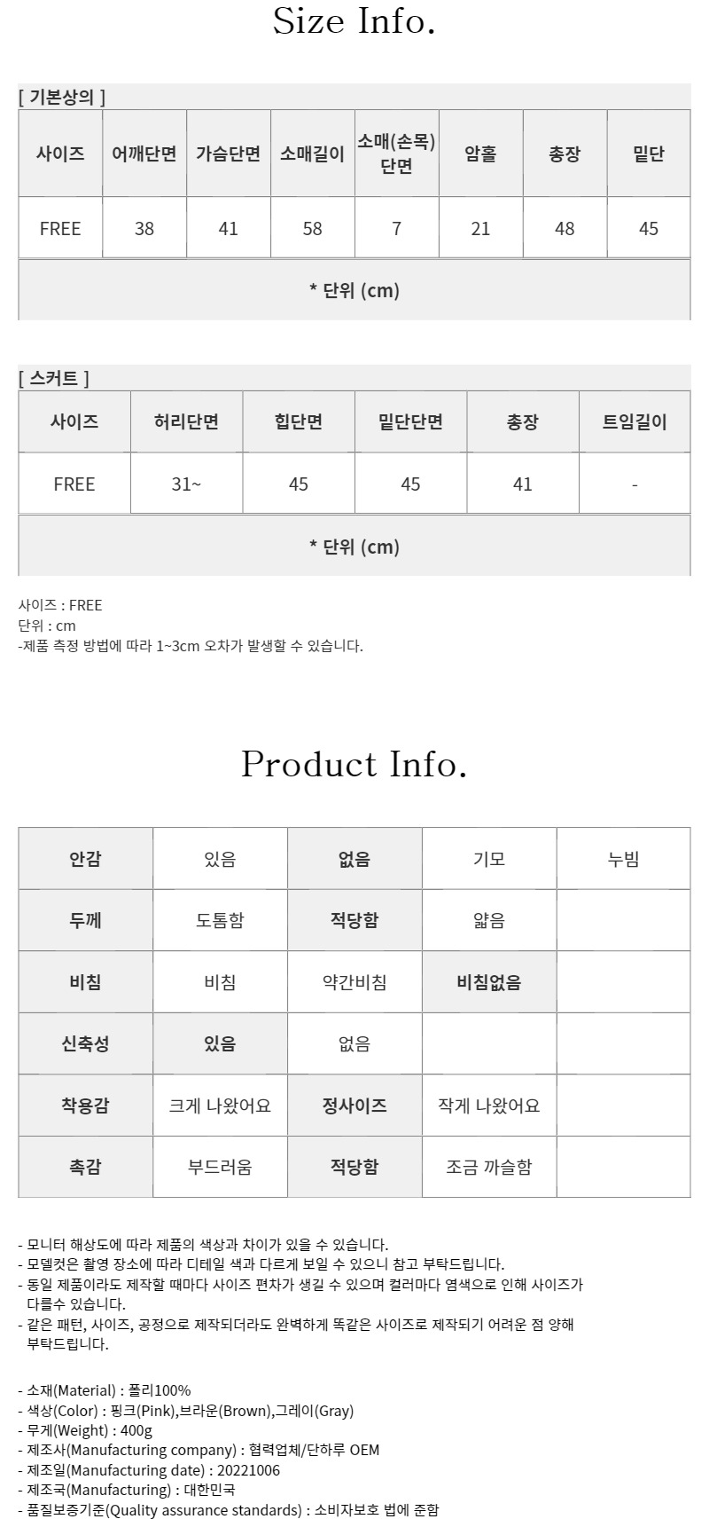 브라운 / FREE 사이즈 착용했습니다^^