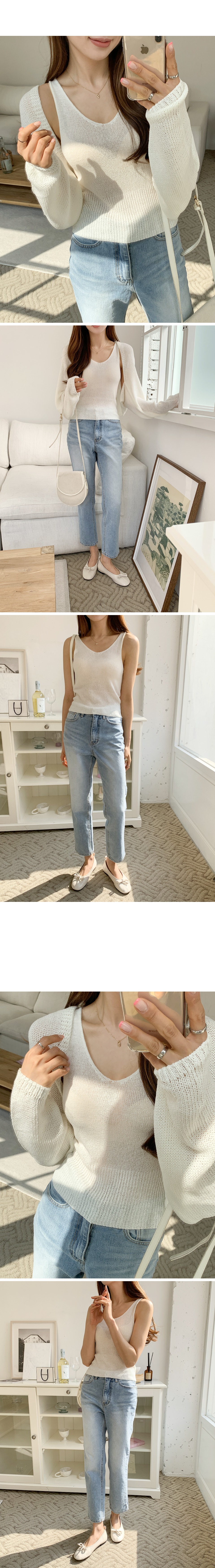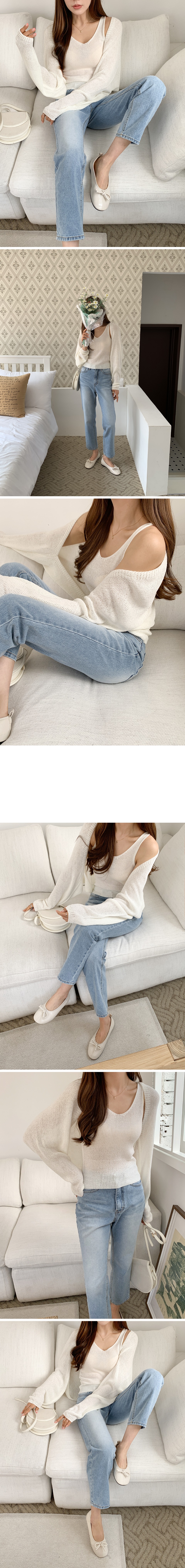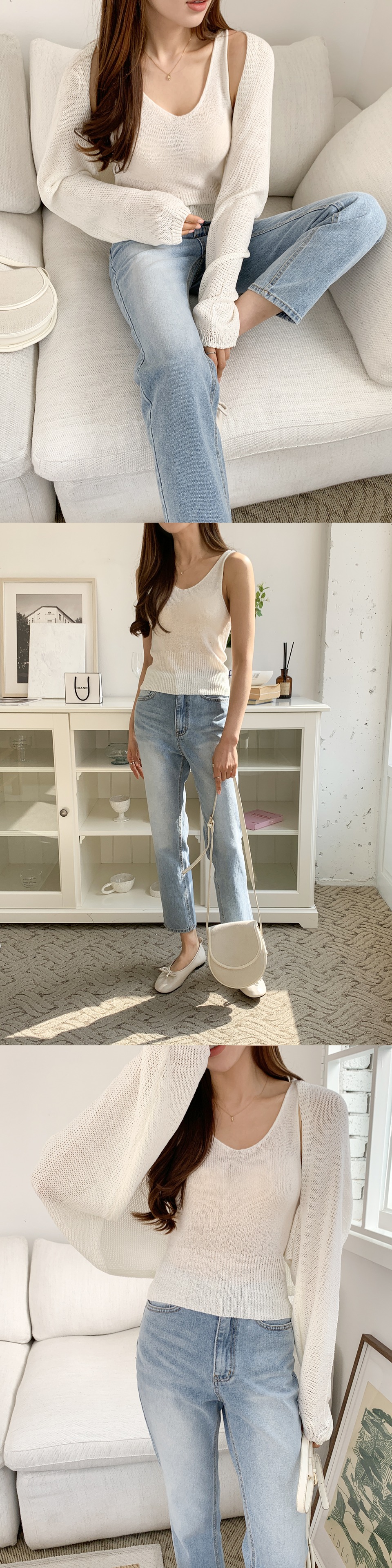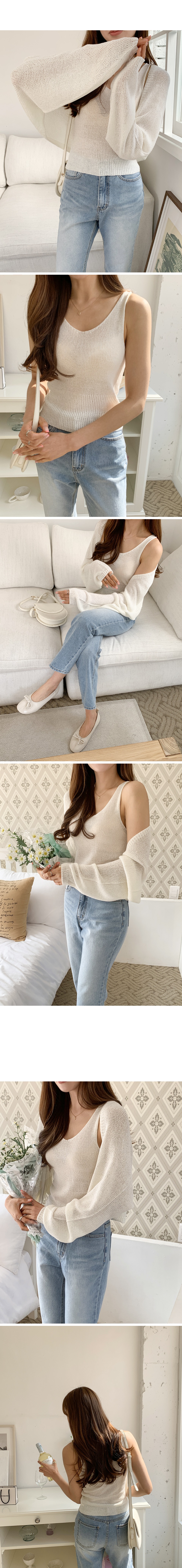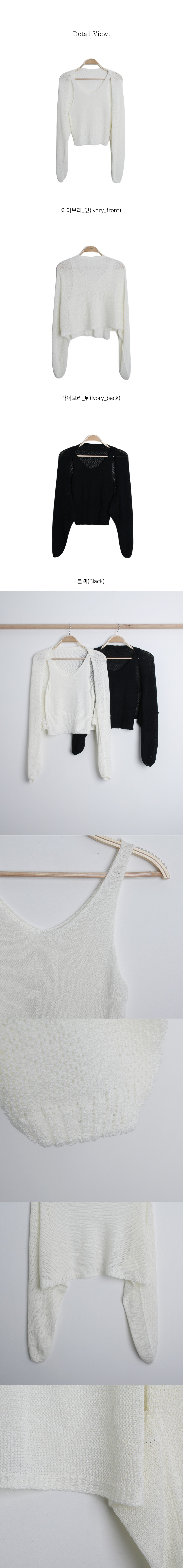 여성 브이넥 민소매 끈나시 볼레로 니트 가디건 투피스 세트