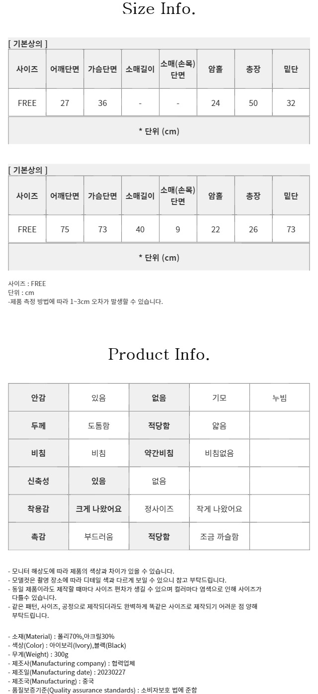 - 상품 하자, 오배송의 경우 수령일로부터 7일 이내 고객센터 접수 후 교환∙반품이 가능합니다. (교환/반품비 무료)