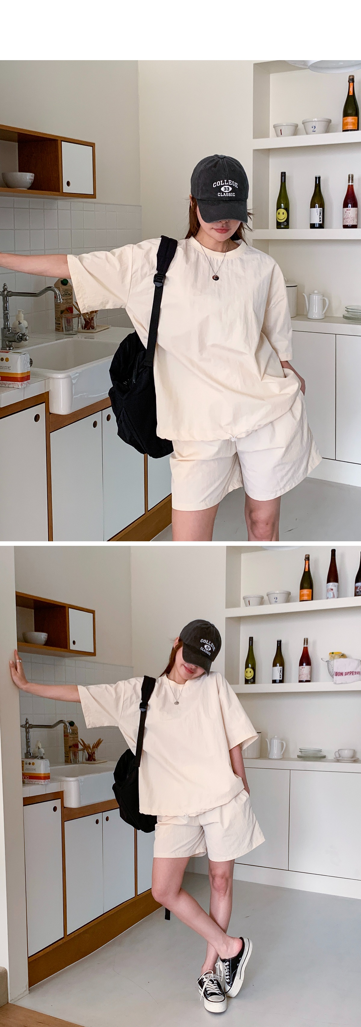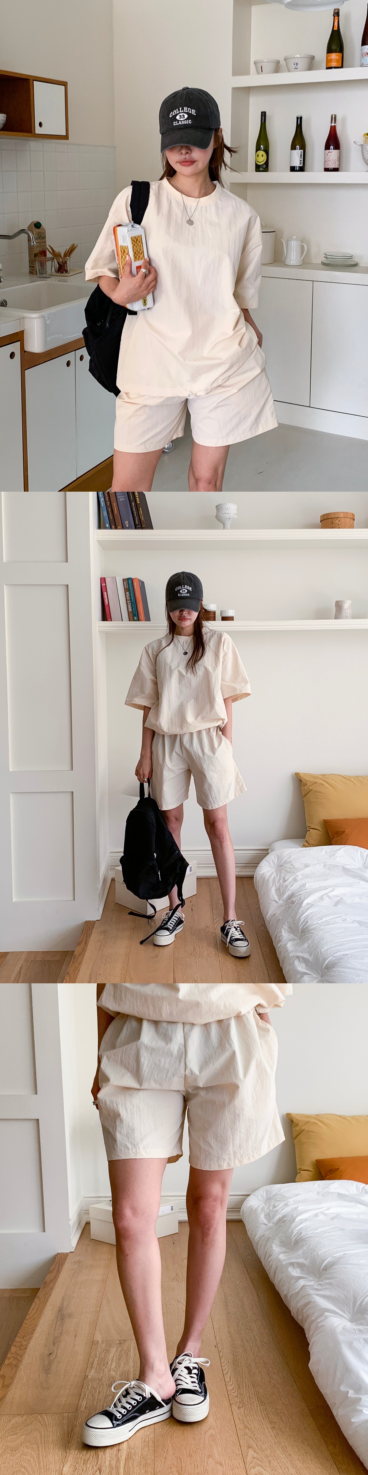 루즈핏 라운드 무지 반팔 티셔츠 밴딩 숏 3부 반바지 팬츠 세트