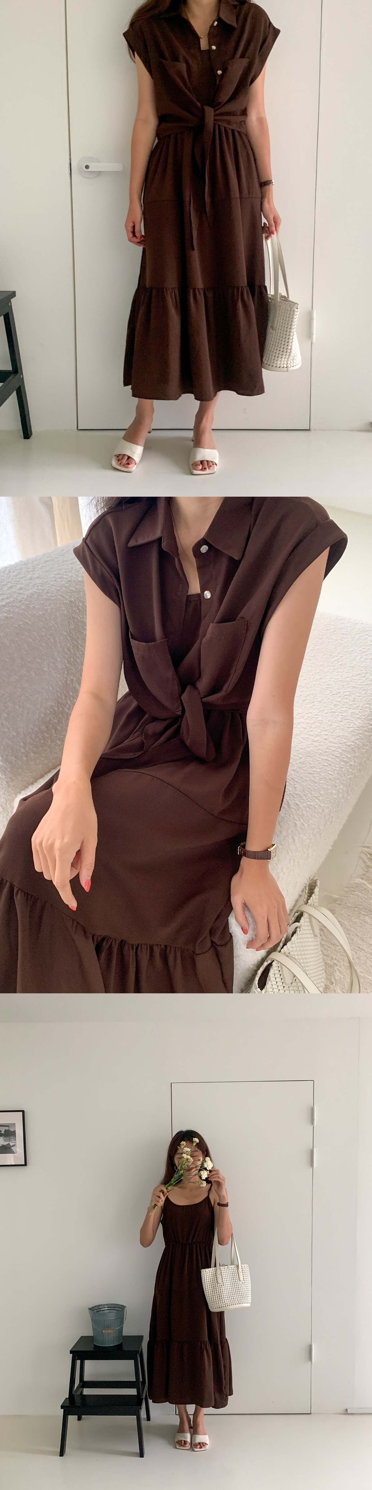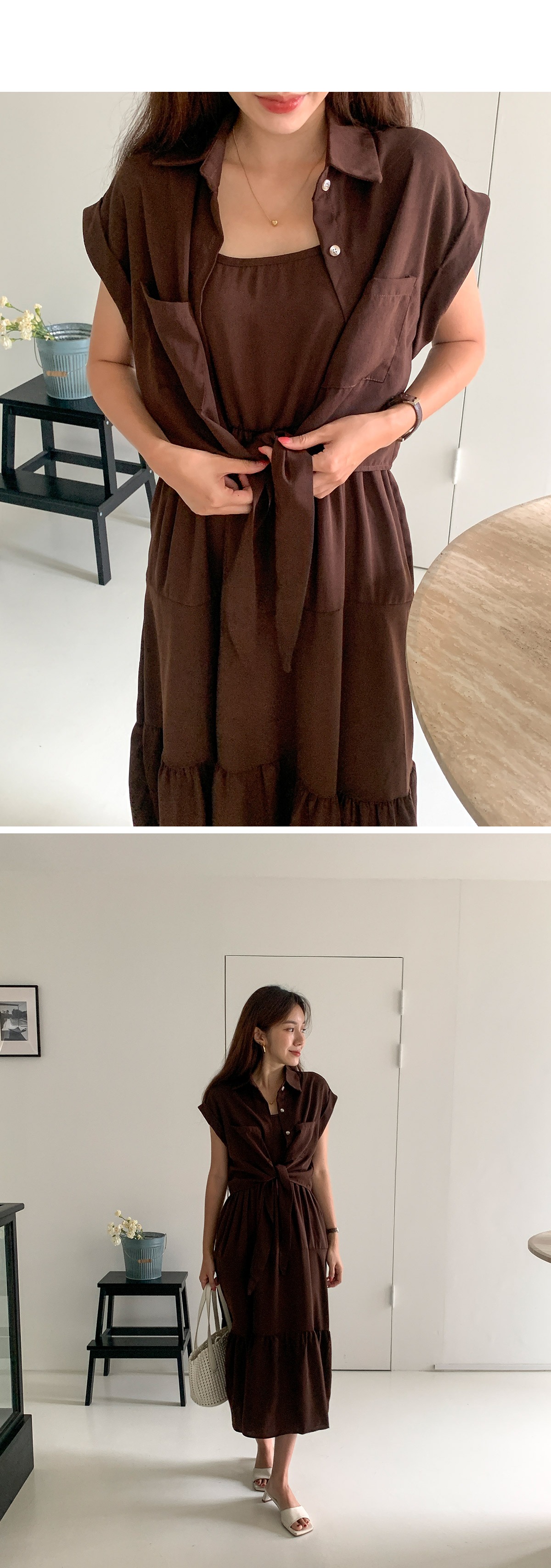 뷔스티에원피스 카라 크롭 셔츠 민소매 나시 롱 원피스 세트