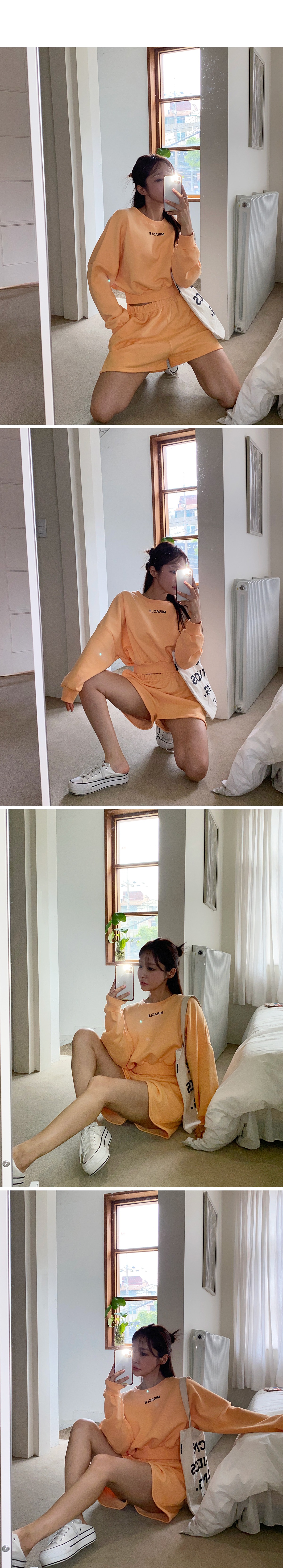 라운드넥 긴팔 맨투맨 티셔츠 밴딩 3부 반바지 코디 세트