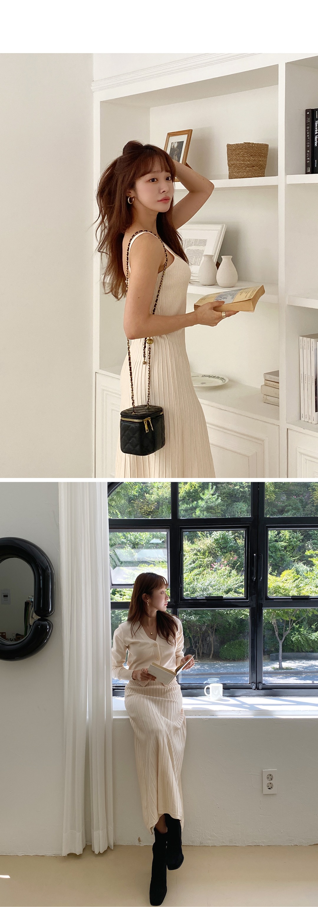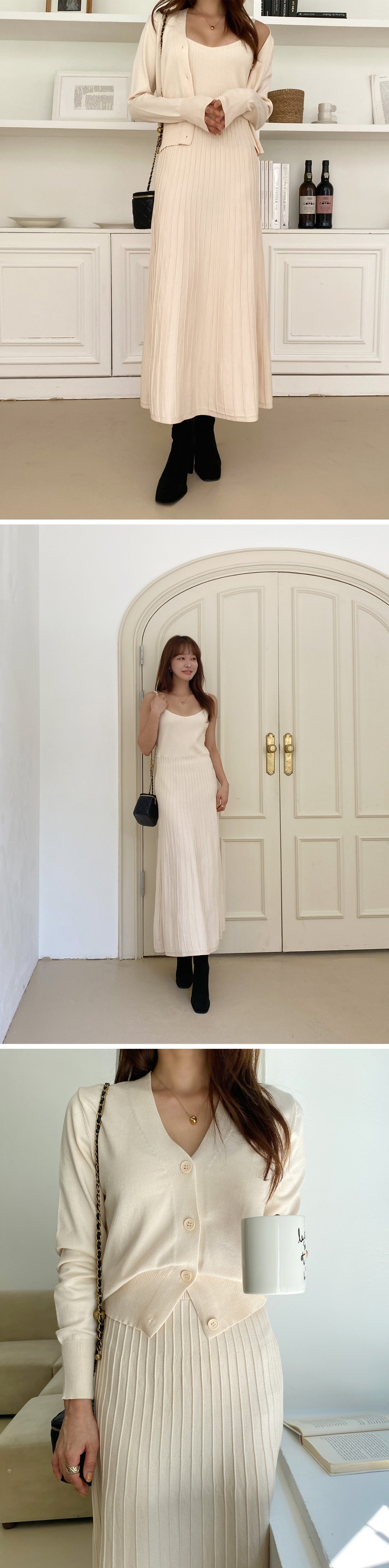 골지원피스 니트원피스 민소매 나시 가디건 코디 세트