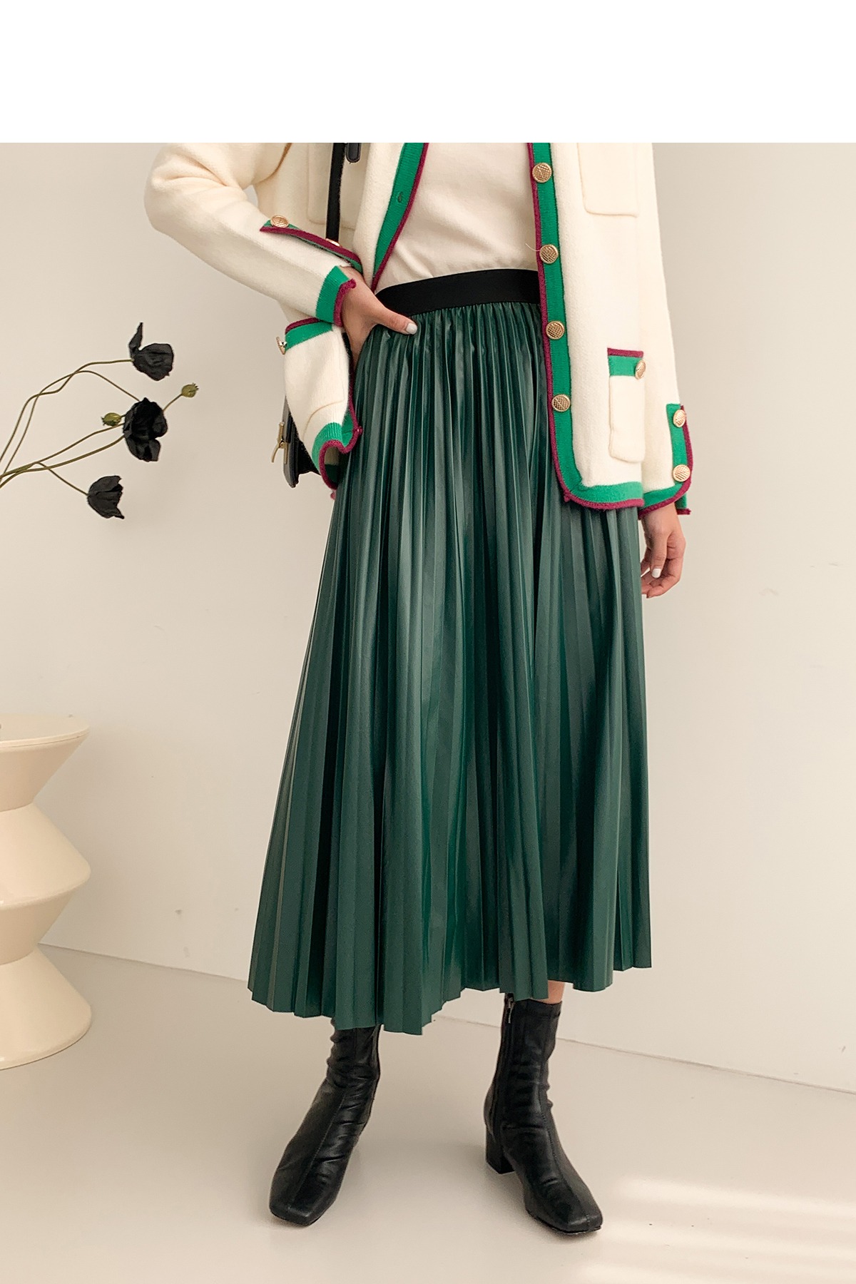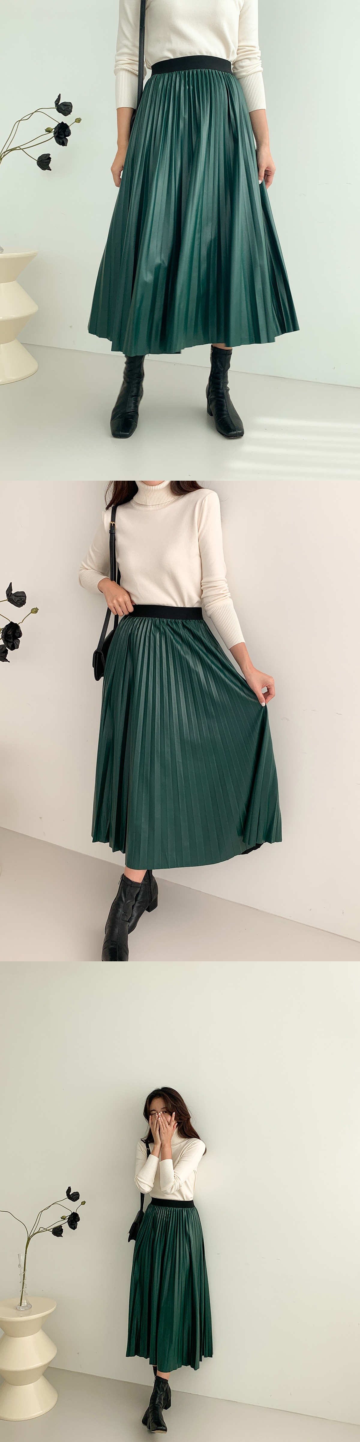 플리츠 밴딩 레더 가죽 가을 주름 롱 스커트 치마