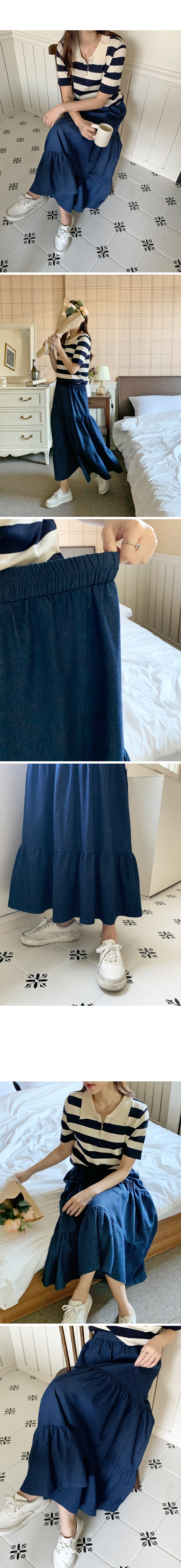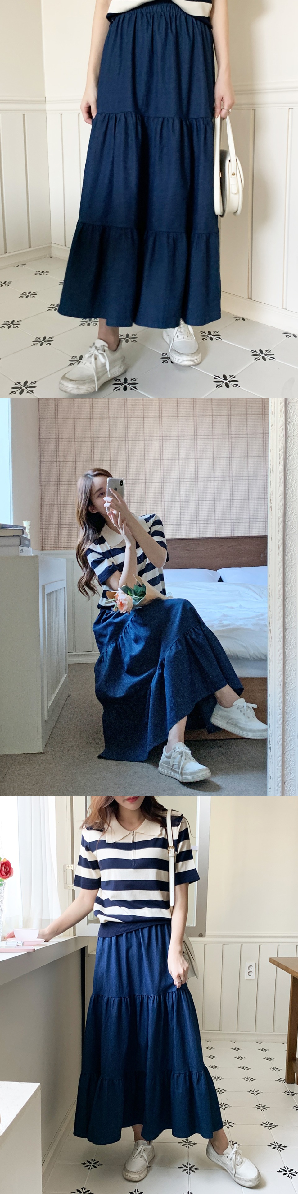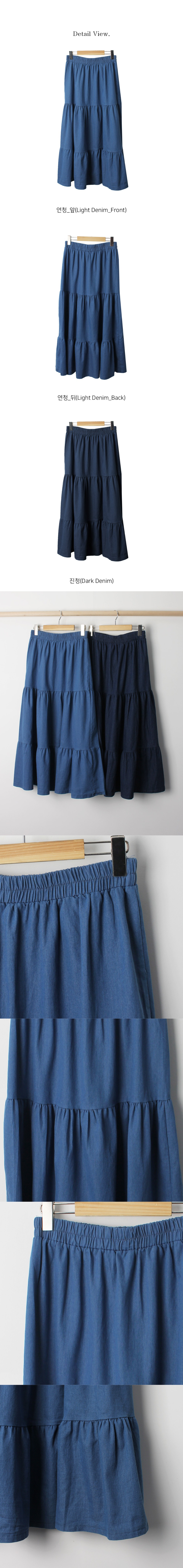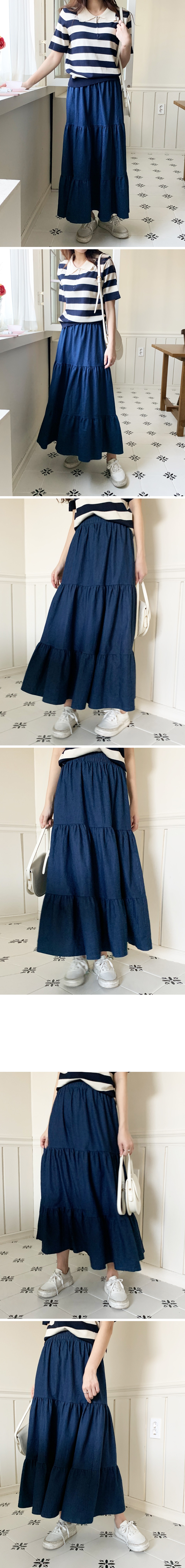 면 데님 캉캉 스커트 밴딩 롱 봄 여름 치마