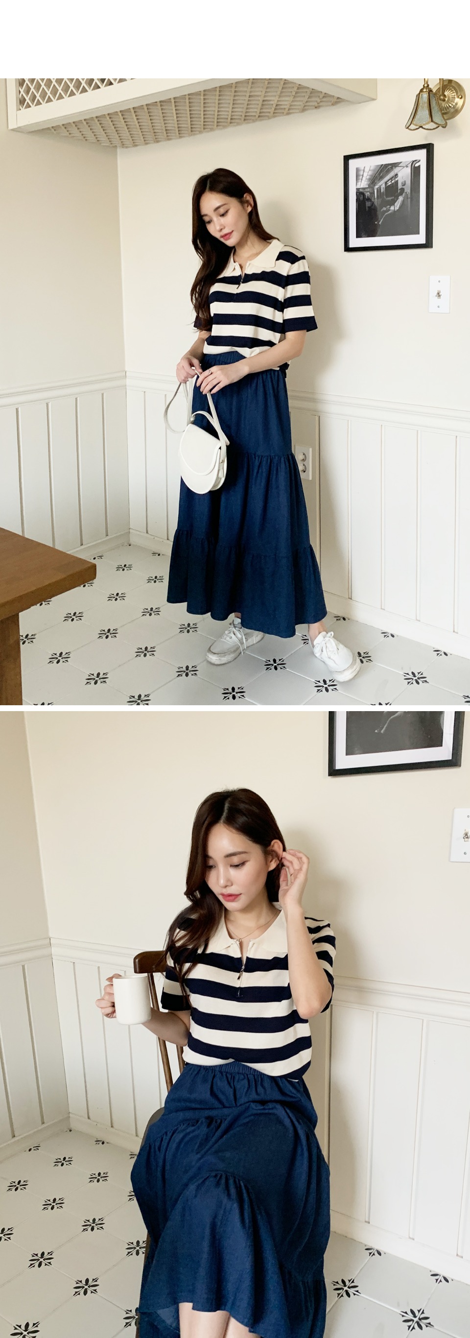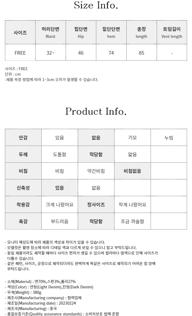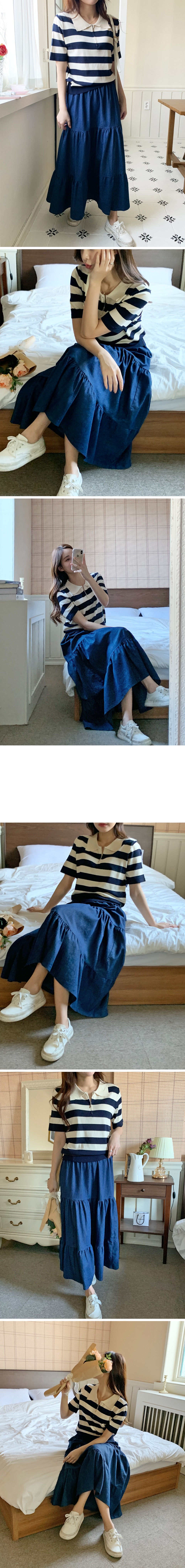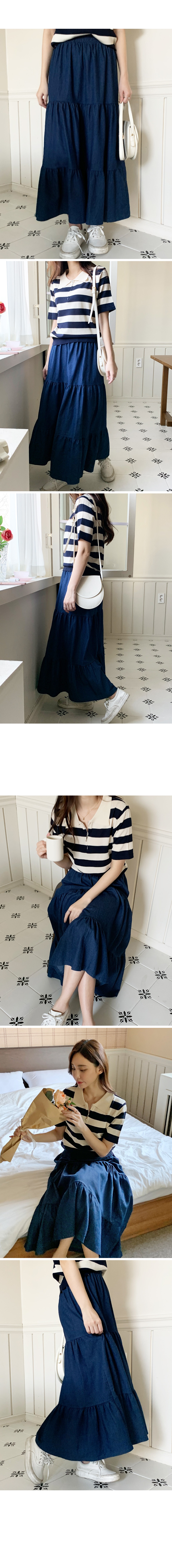 면 데님 캉캉 스커트 밴딩 롱 봄 여름 치마