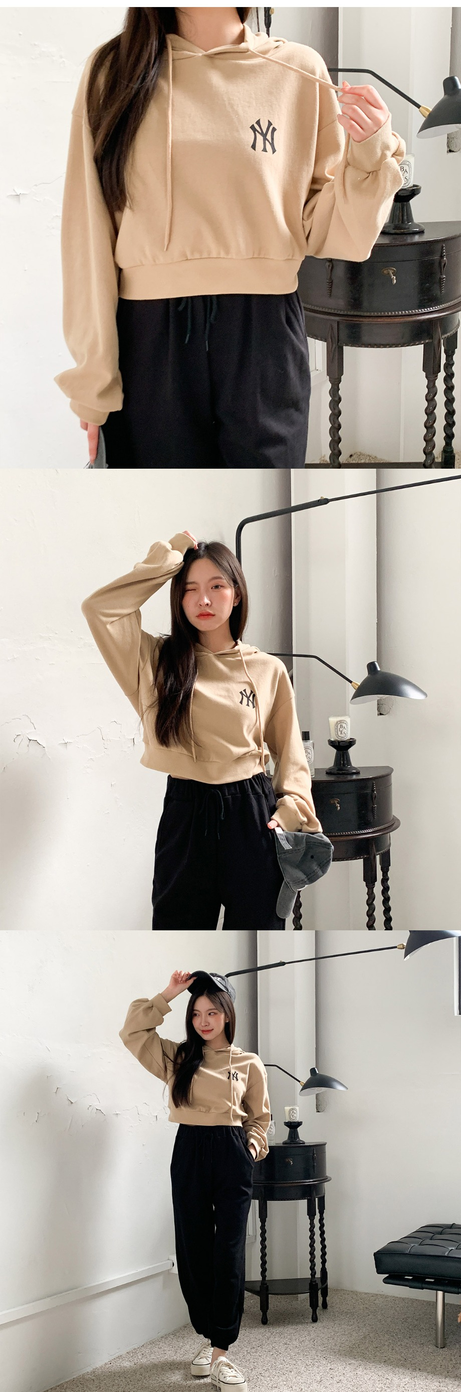 크롭 프린팅 레터링 루즈핏 캐주얼 긴팔 후드 티