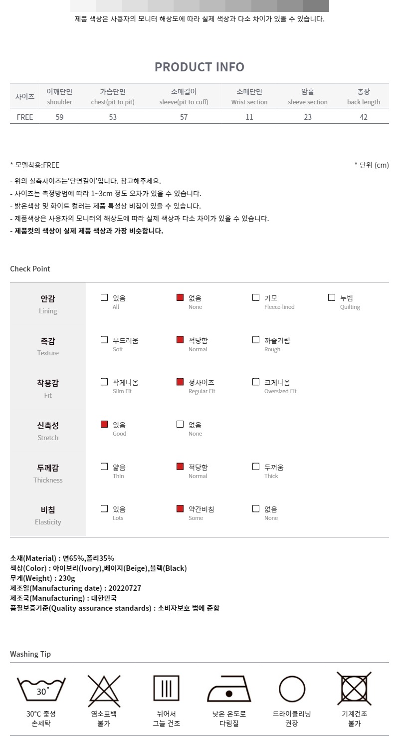 크롭된 기장의 루즈한 핏 감으로 편하게 입기 좋으며