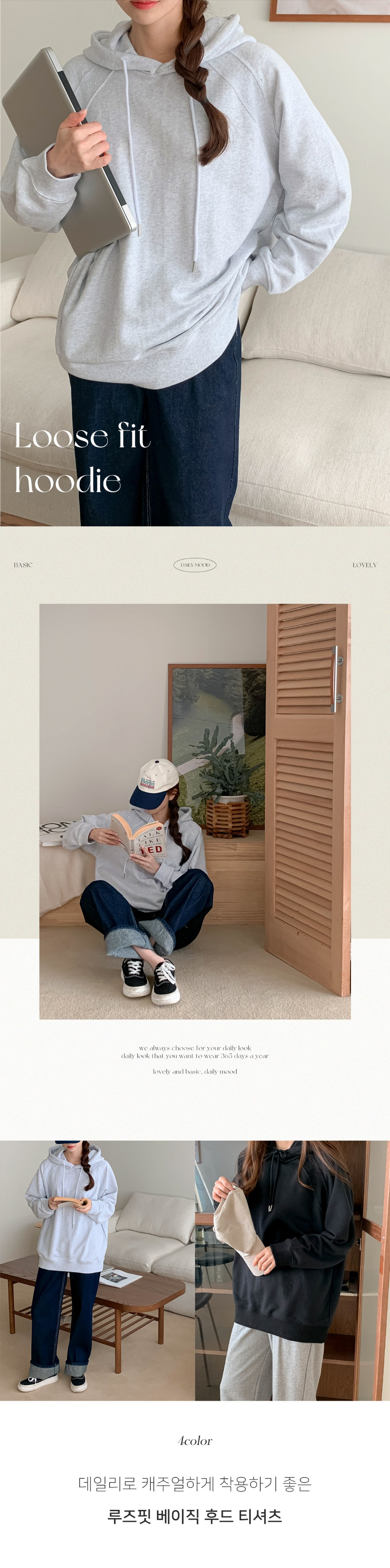 루즈핏 무지 베이직 박시 캐주얼 오버핏 후드 티