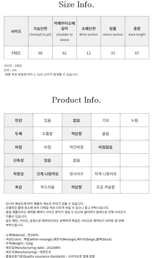 사이즈는 FREE로