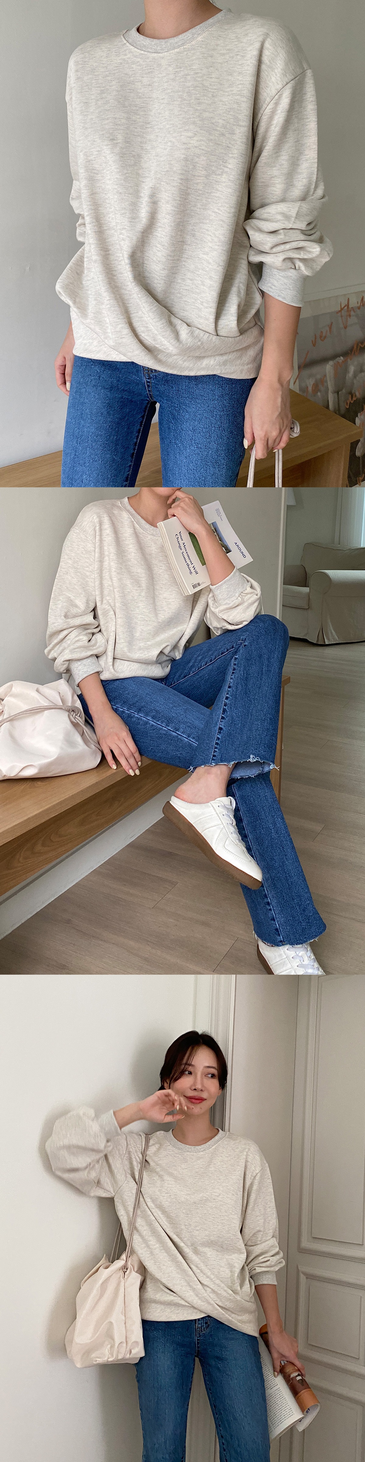 루즈핏 라운드 꼬임 무지 맨투맨 티셔츠 가을 겨울
