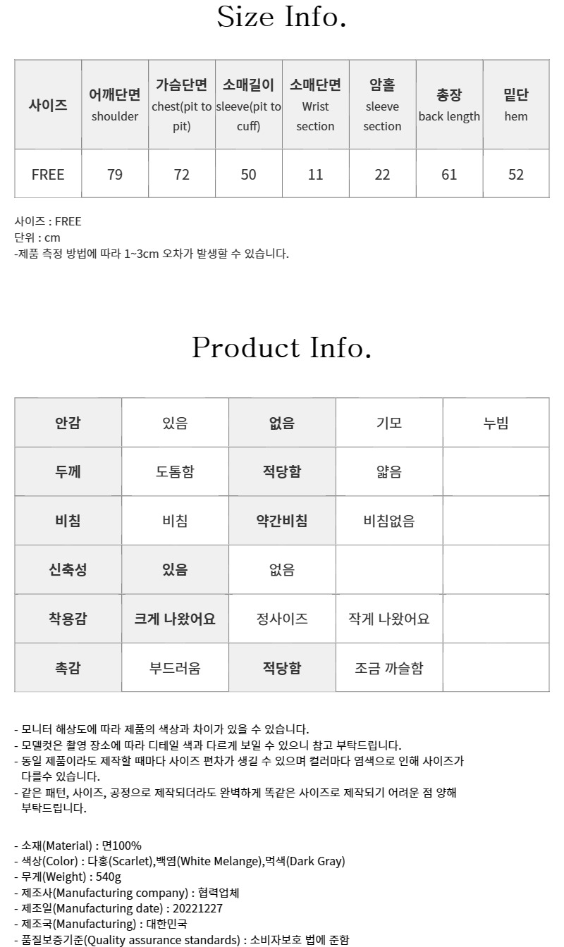 - 상품 하자, 오배송의 경우 수령일로부터 7일 이내 고객센터 접수 후 교환∙반품이 가능합니다. (교환/반품비 무료)