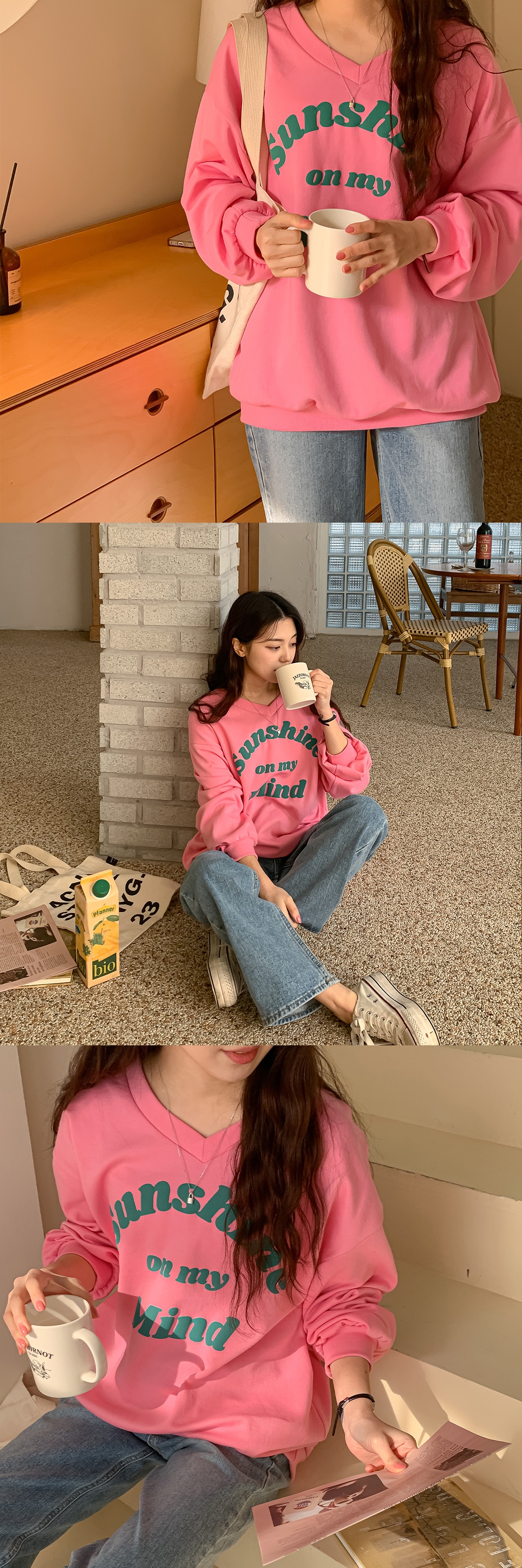 브이넥 루즈핏 박시 레터링 프린팅 맨투맨 티셔츠