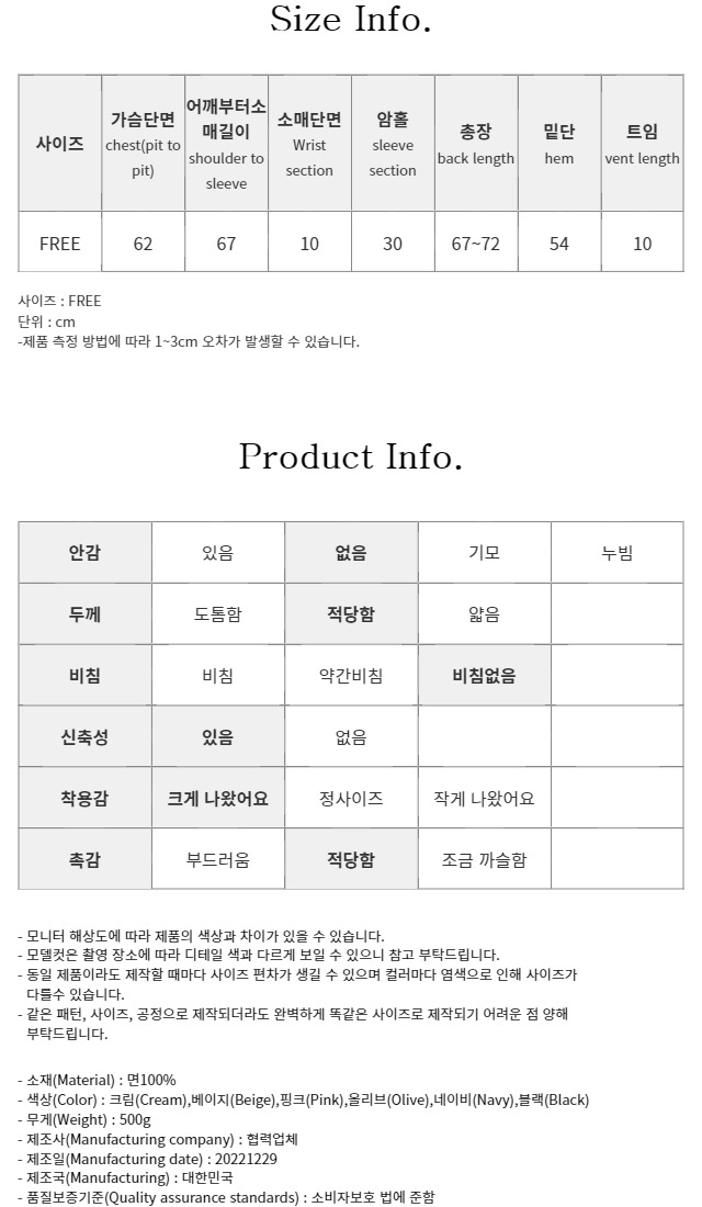 - 상품 하자, 오배송의 경우 수령일로부터 7일 이내 고객센터 접수 후 교환∙반품이 가능합니다. (교환/반품비 무료)