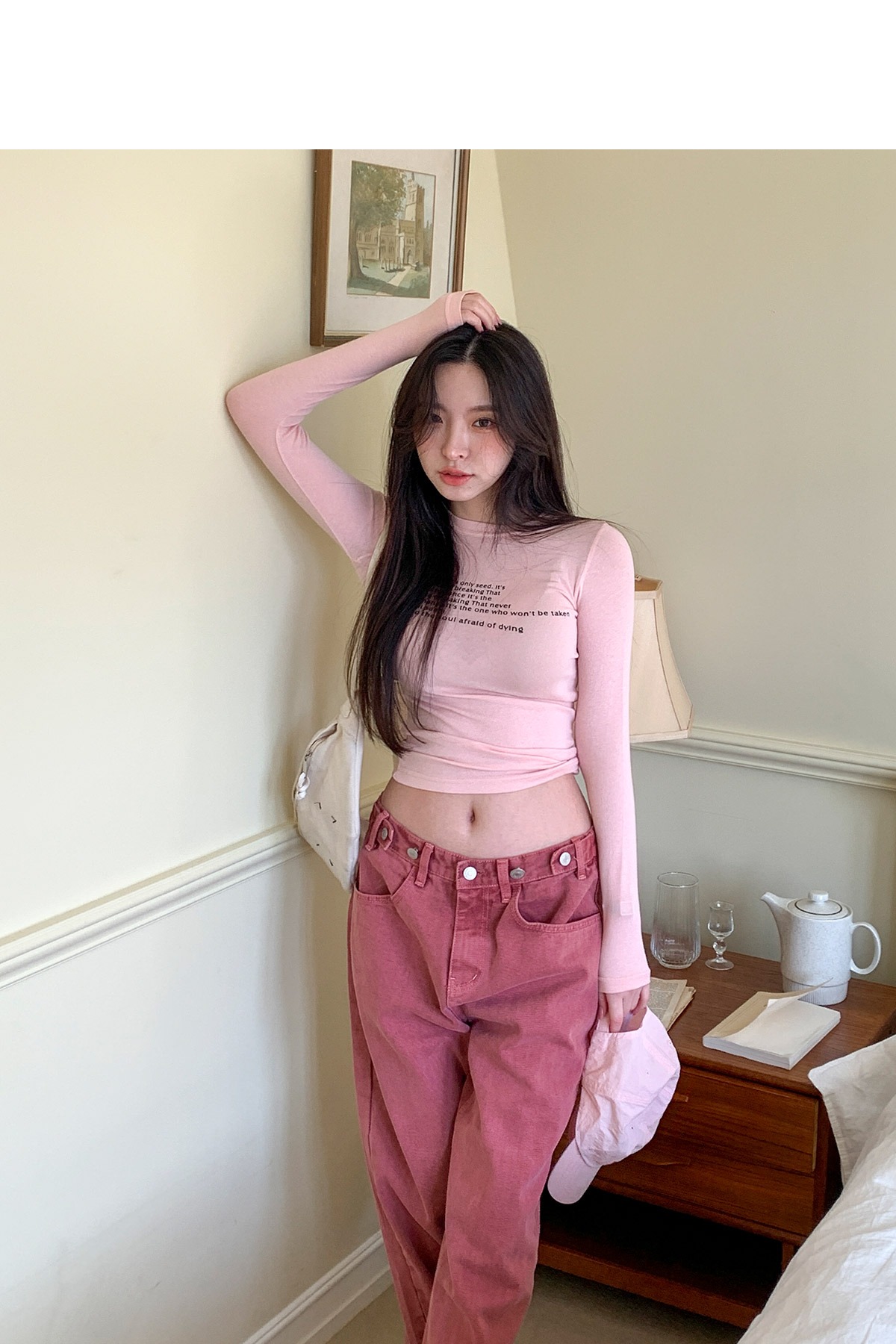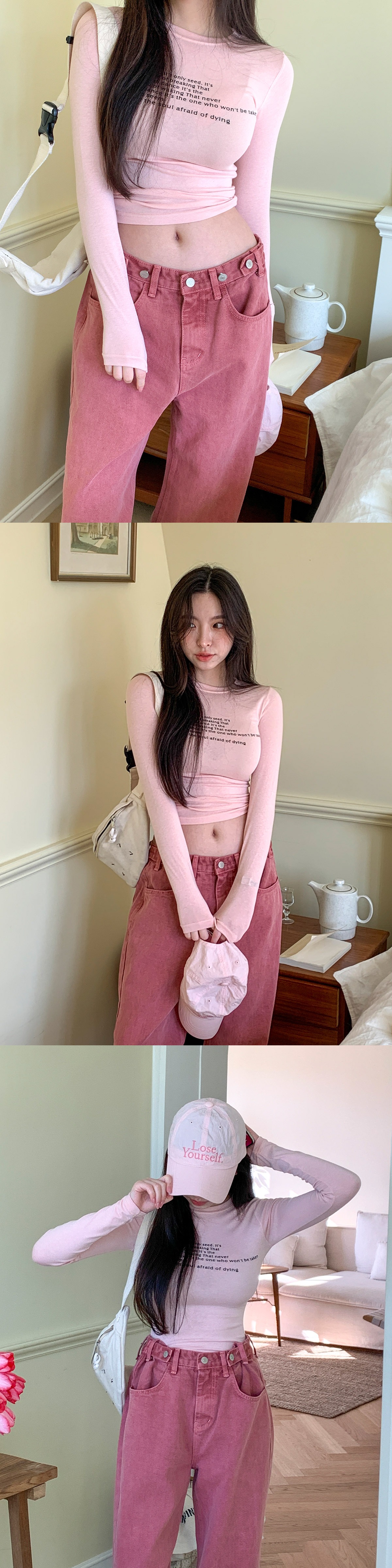 라운드 레터링 슬림 봄 스판 쫀쫀 여성 티셔츠
