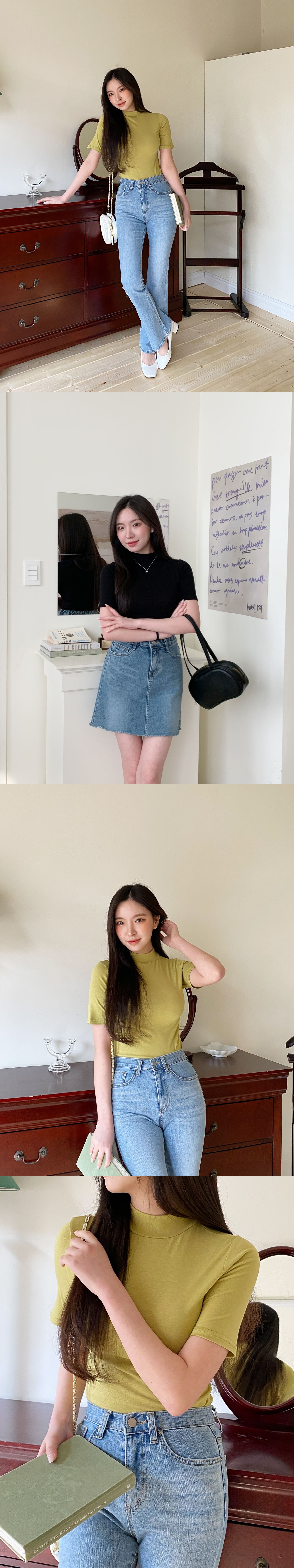 여성 슬림 반목 목티 무지티 이너 반폴라 반팔 티셔츠