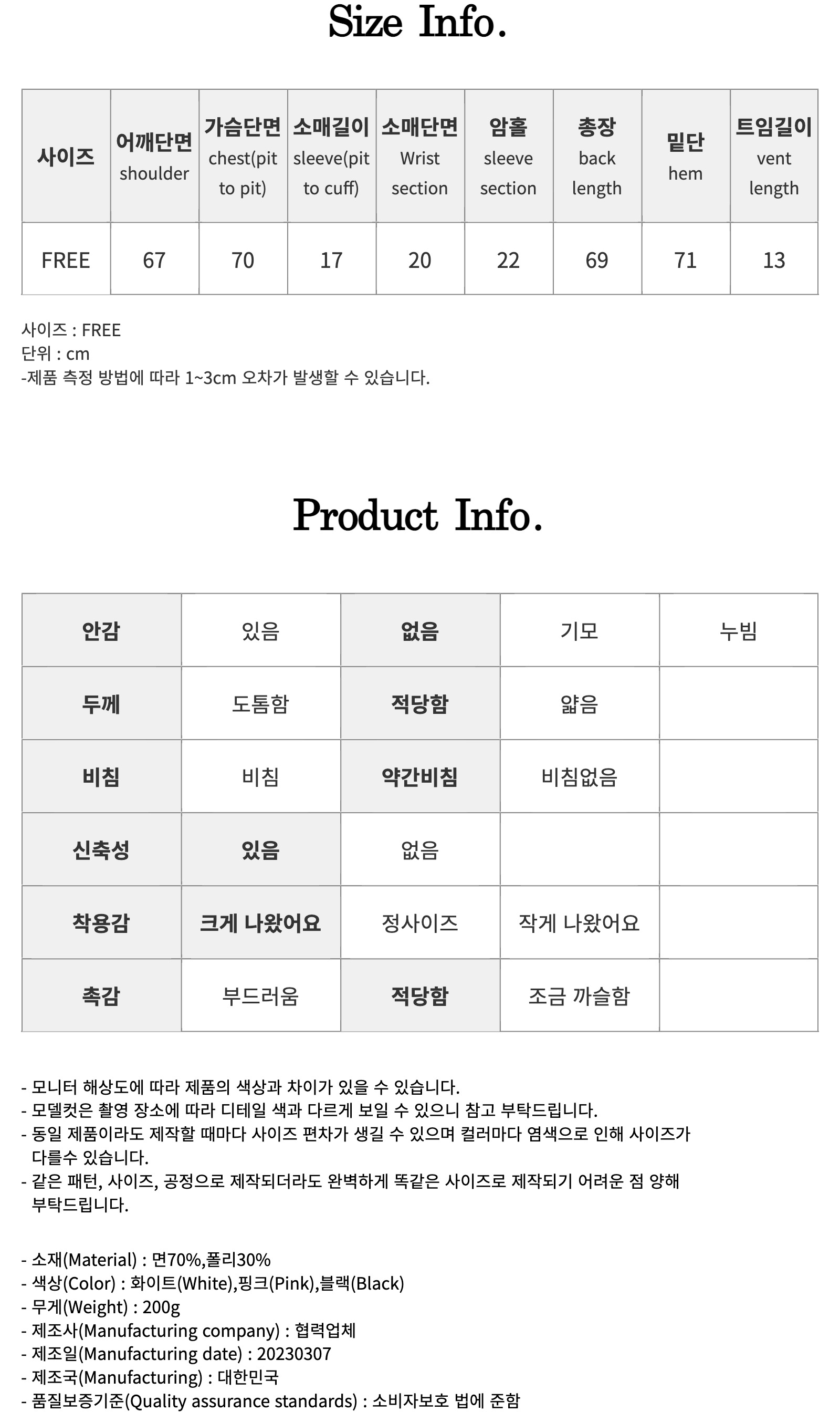 - 상품 하자, 오배송의 경우 수령일로부터 7일 이내 고객센터 접수 후 교환∙반품이 가능합니다. (교환/반품비 무료)