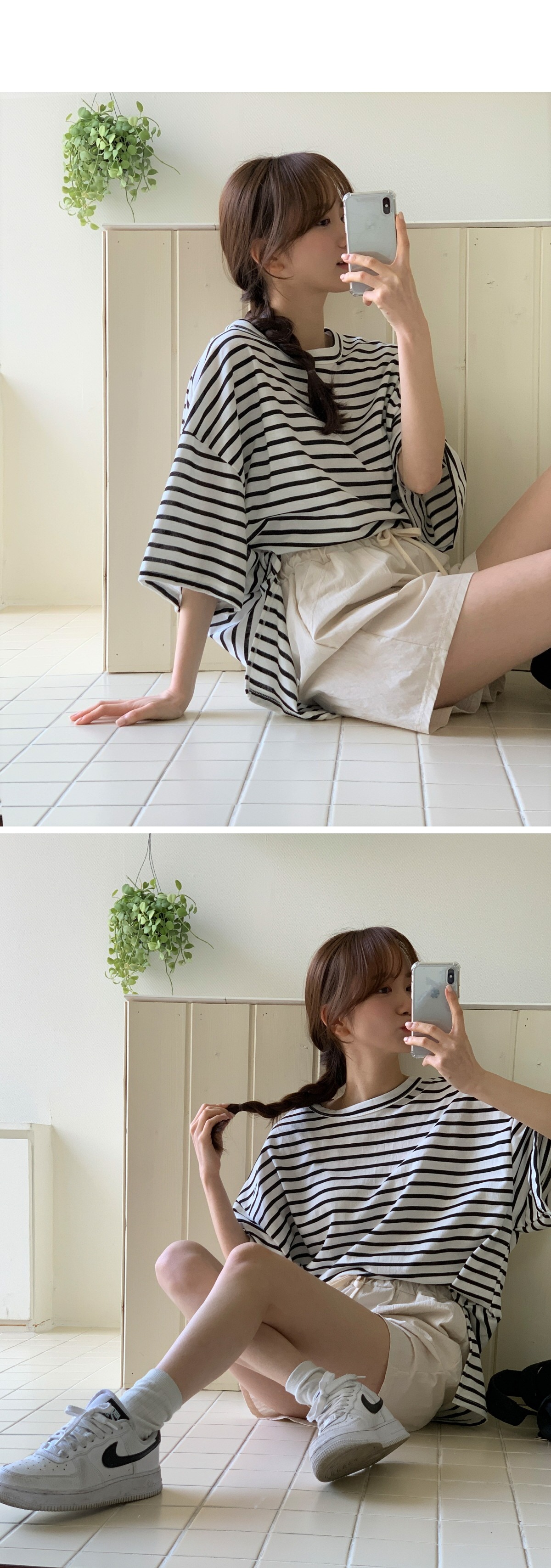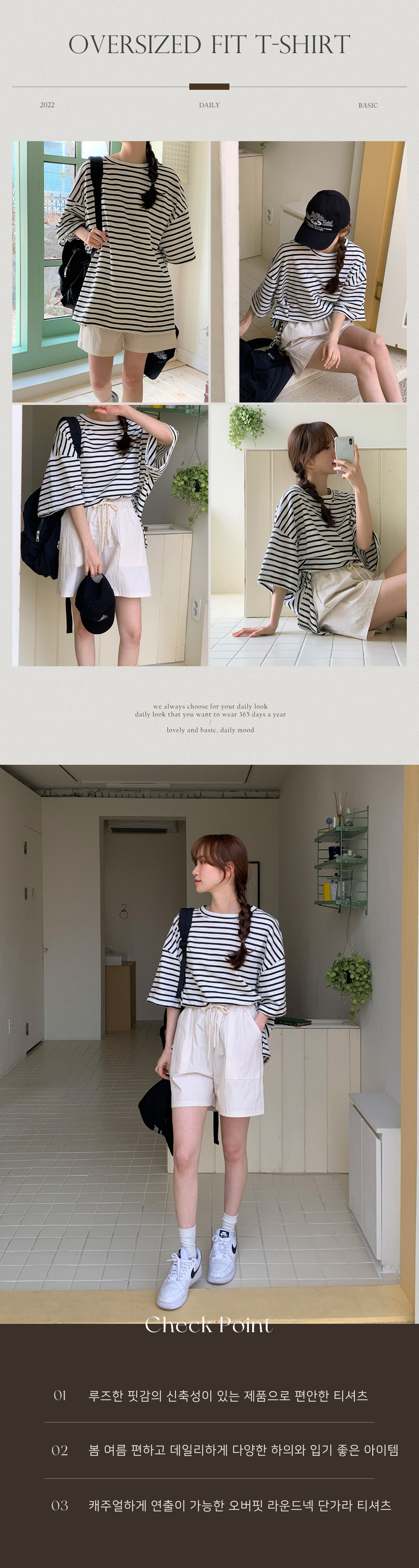 오버핏 줄무늬 단가라 티셔츠 루즈핏 스트라이프 반팔 티