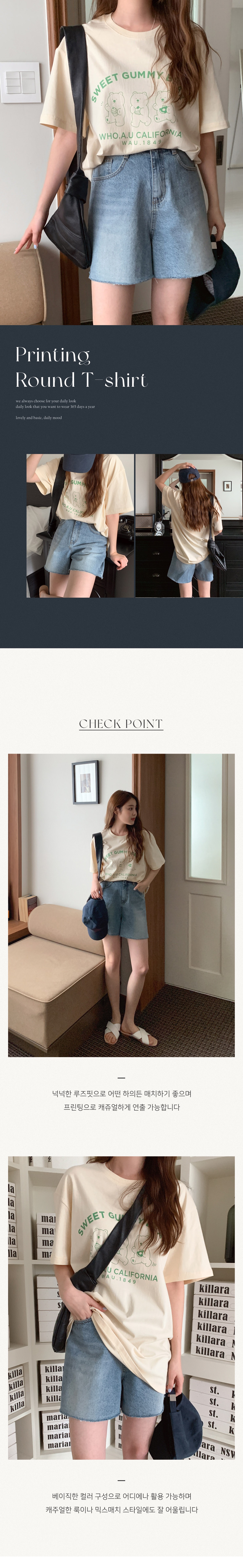 캐주얼한 베어 프린팅 반팔 티셔츠입니다