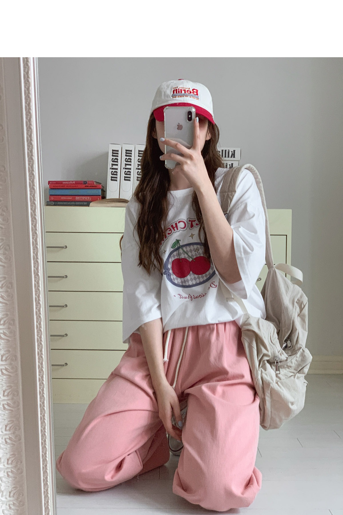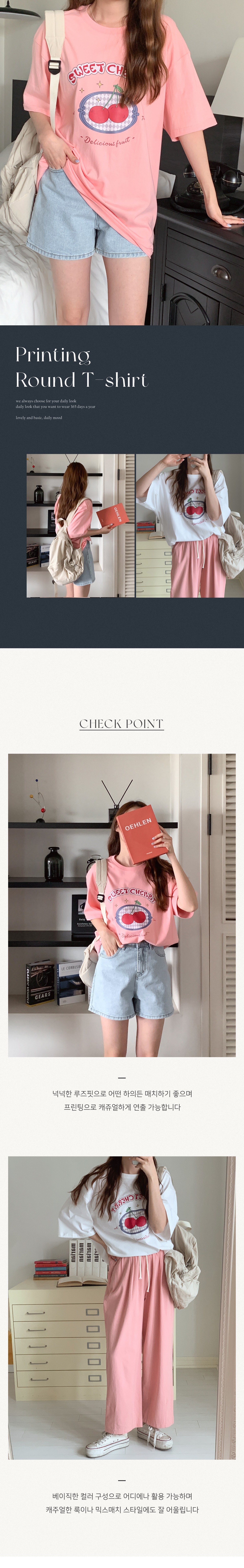 프린팅티셔츠 라운드 오버핏 봄여름 여성 반팔 티셔츠