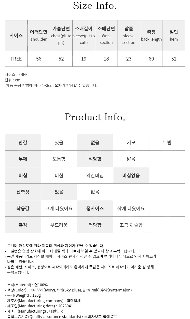 - 상품 하자, 오배송의 경우 수령일로부터 7일 이내 고객센터 접수 후 교환∙반품이 가능합니다. (교환/반품비 무료)