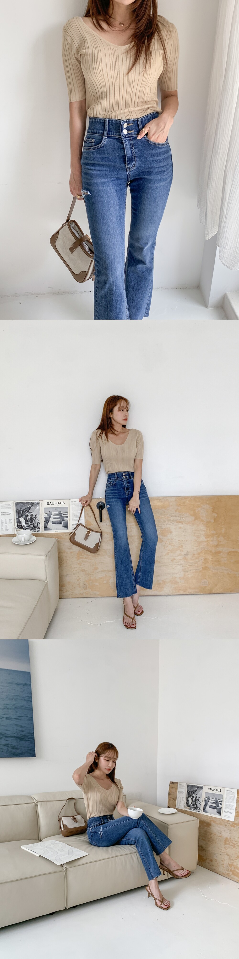골지티 브이넥 시스루 얇은 슬림핏 베이직 반팔 티셔츠