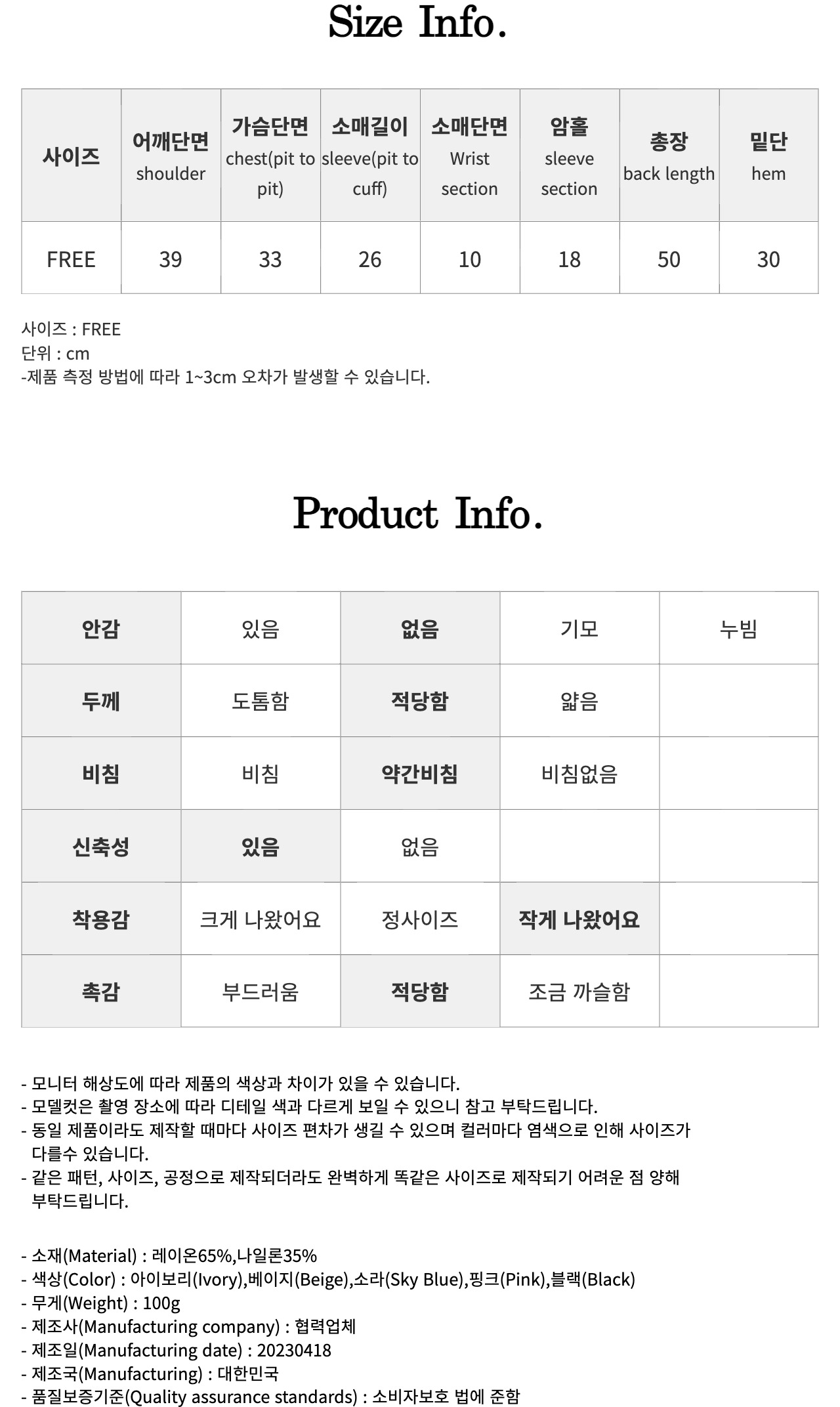 - 상품 하자, 오배송의 경우 수령일로부터 7일 이내 고객센터 접수 후 교환∙반품이 가능합니다. (교환/반품비 무료)