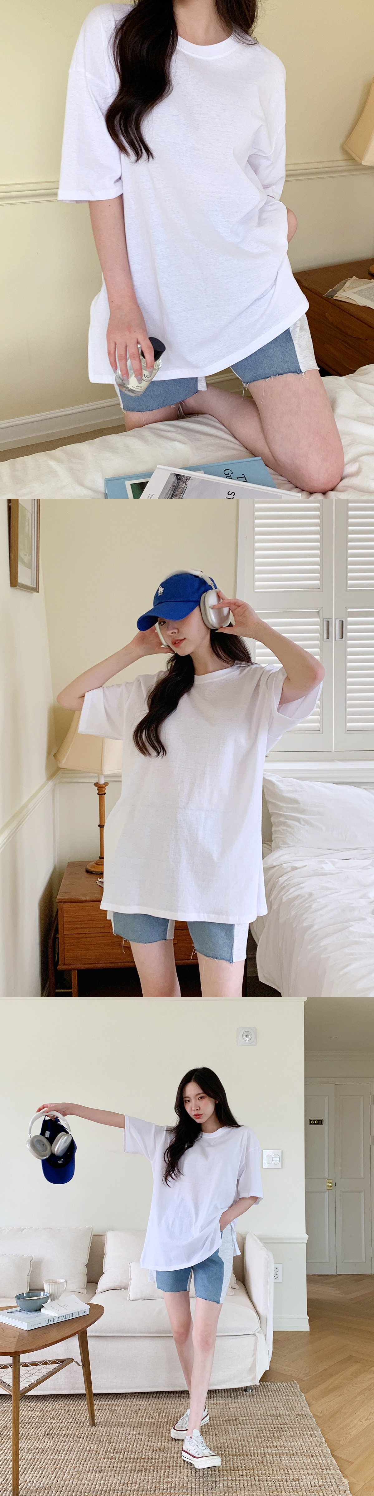 라운드넥 루즈핏 무지 반팔 티셔츠입니다