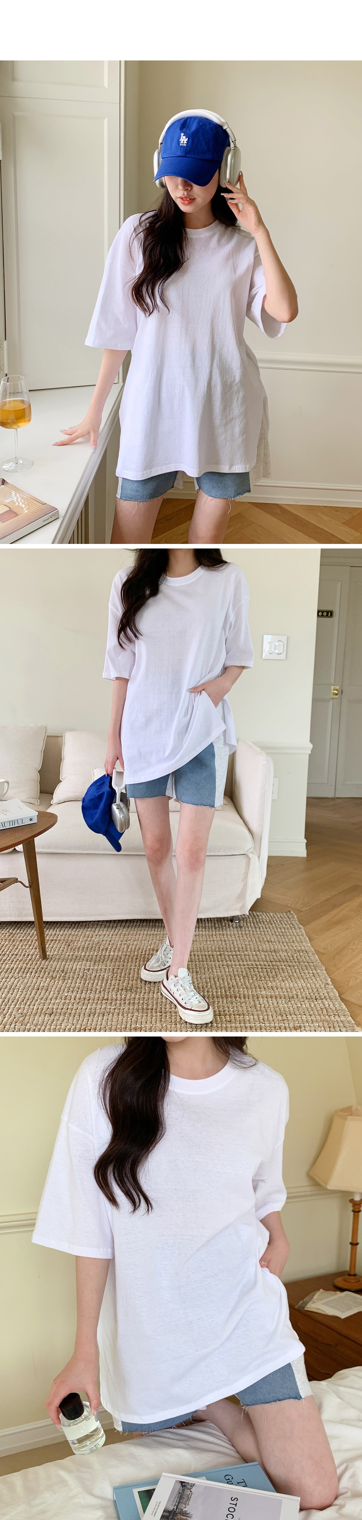 무지티 라운드 루즈 오버핏 트임 이너 레이어드 반팔 티셔츠