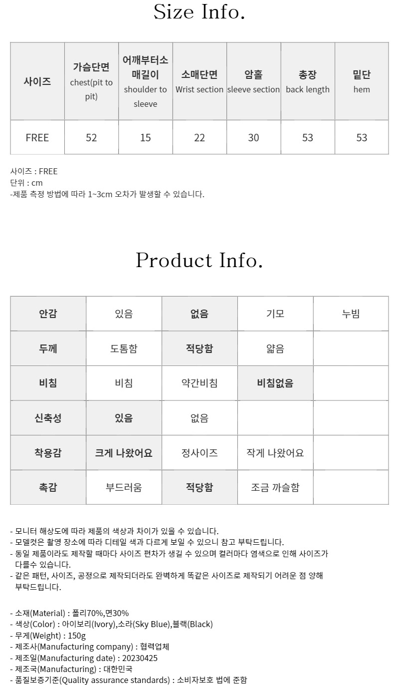 - 상품 하자, 오배송의 경우 수령일로부터 7일 이내 고객센터 접수 후 교환∙반품이 가능합니다. (교환/반품비 무료)