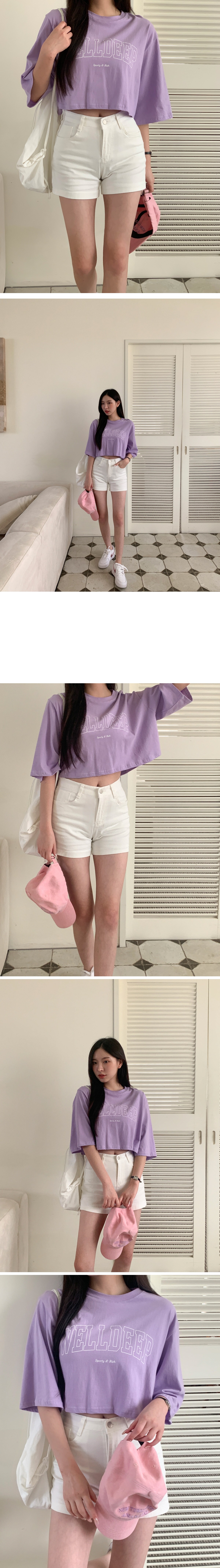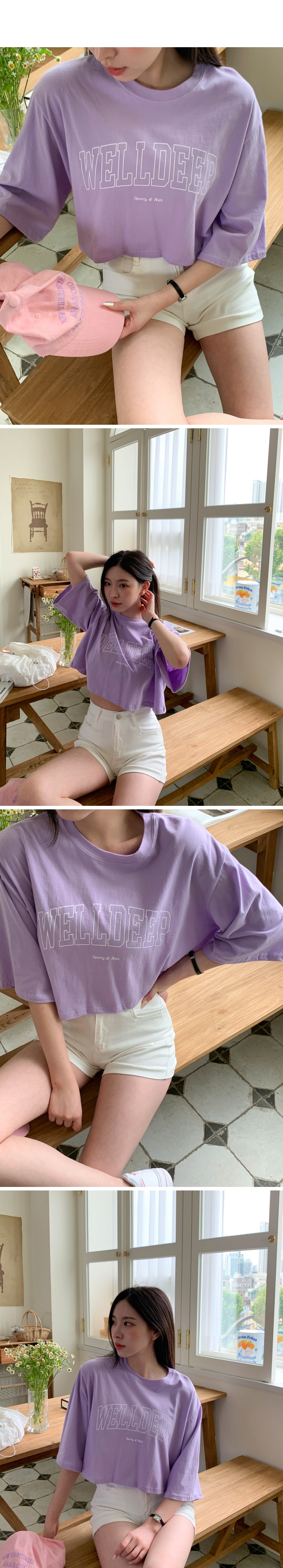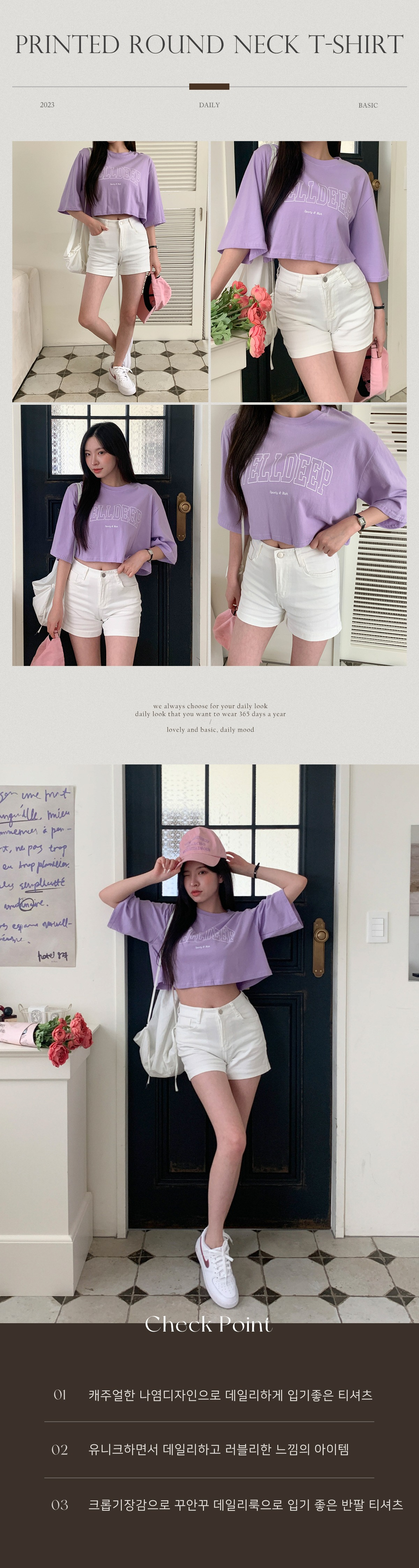 크롭티 라운드 나염 레터링 캐주얼 여성 반팔 티셔츠