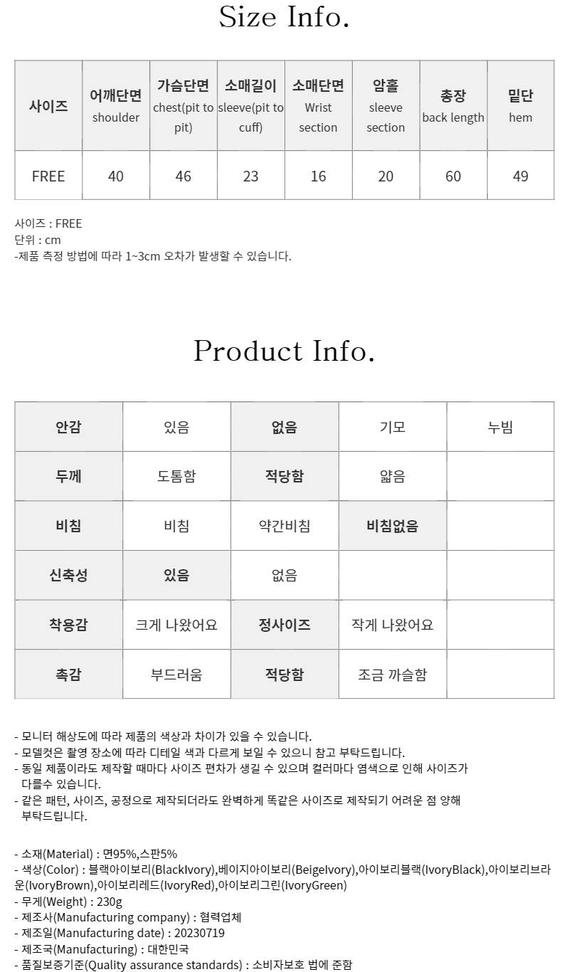 - 상품 하자, 오배송의 경우 수령일로부터 7일 이내 고객센터 접수 후 교환∙반품이 가능합니다. (교환/반품비 무료)